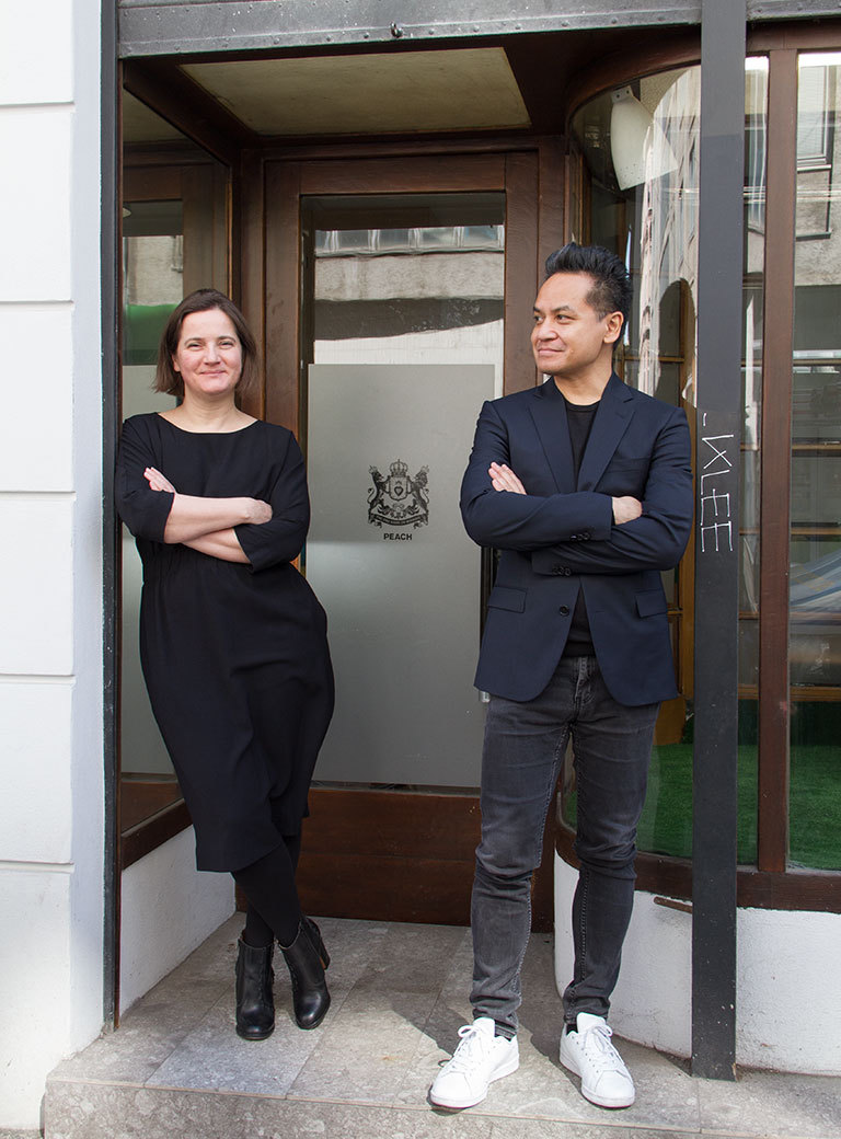 Seit über 17 Jahren beraten Birgit Vollmeier und Yudi Warsosumarto unter dem Agentur-Label PEACH unter anderem namhafte Institutionen wie das MAK – Museum für angewandte Kunst in Wien sowie die Wiener Galerienszene strategisch und kreativ. Die Leidenschaft für Kunst definiert sich aber nicht allein über die Agenturleistung. Seit Langem betreibt PEACH in der Vitrine seines Ladenlokals im sechsten Wiener Gemeindebezirk ein „Kunst-Schaufenster“ und ist damit selbst zu einer kleinen Institution in Wiens Kulturbetrieb geworden. Wir sprachen mit Birgit und Yudi über die Anfänge dieser ungewöhnlichen Agentur und die tiefe Verbundenheit der beiden Gründer mit der Kunst- und Kulturszene.