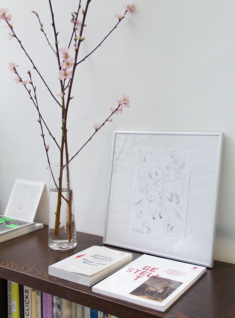 (Drawing) André Butzer, Untitled (1999) / Books by PEACH: Volkskundemuseum Wien, Gelehrte Objekte, Wege zum Wissen (2013) / Gestellt, Fotografie als Werkzeug in der Habsburger Monarchie (2014)
