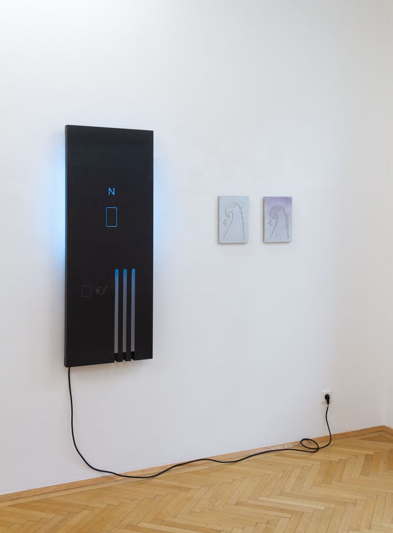 Während Niko Abramidis &NE wirtschaftliche Strukturen und Zukunftsperspektiven in seinen Werken erforscht, beschäftigt sich Peter Jellitsch mit der Schnittstelle zwischen digitaler und analoger Welt. Beide künstlerischen Positionen verzerren unsere herkömmlichen Wahrnehmungen von Zeit, gestalten den Ausstellungsraum und eröffnen somit einen Dialog zwischen Vergangenheit und Gegenwart. Sie betonen die komplexe und undurchsichtige Natur der heutigen wirtschaftlichen Prozesse und digitalen Räume und lenken die Aufmerksamkeit auf deren Komplexität und Undurchschaubarkeit.