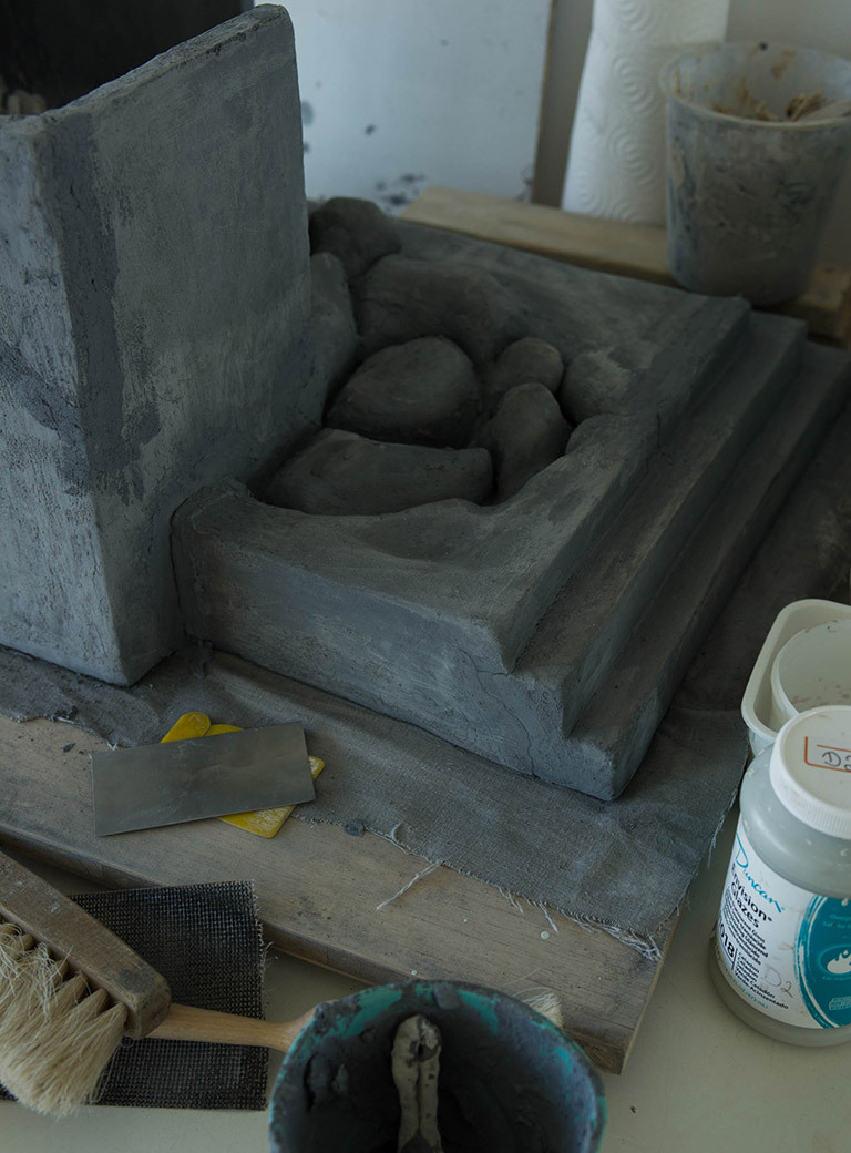 Die Idee entstand mit meiner Galerie in Paris, Jocelyn Wolff. Meine Arbeiten sind sehr komplex, und ich verwende viele unterschiedliche Materialen, wie Beton, Keramik, Textilien, und Glas. Dazu zeichne ich Gouachen. Im Vordergrund meiner künstlerischen Arbeit steht immer die Thematik, und wir wollten die Vielschichtigkeit und vielen Aspekte meiner Arbeit zeigen. Nach Absprache mit den Galerien nächst. St. Stephan und Esther Schipper sowie Jocelyn Wolff haben alle der Idee einer Einzelpräsentation zugestimmt. Ich kann mich mit dieser Entscheidung nur sehr glücklich schätzen und finde es äußerst sympathisch, dass hier eine Zusammenarbeit zwischen den Galerien entstand, bei der das Konkurrenzdenken keine Bedeutung hat.