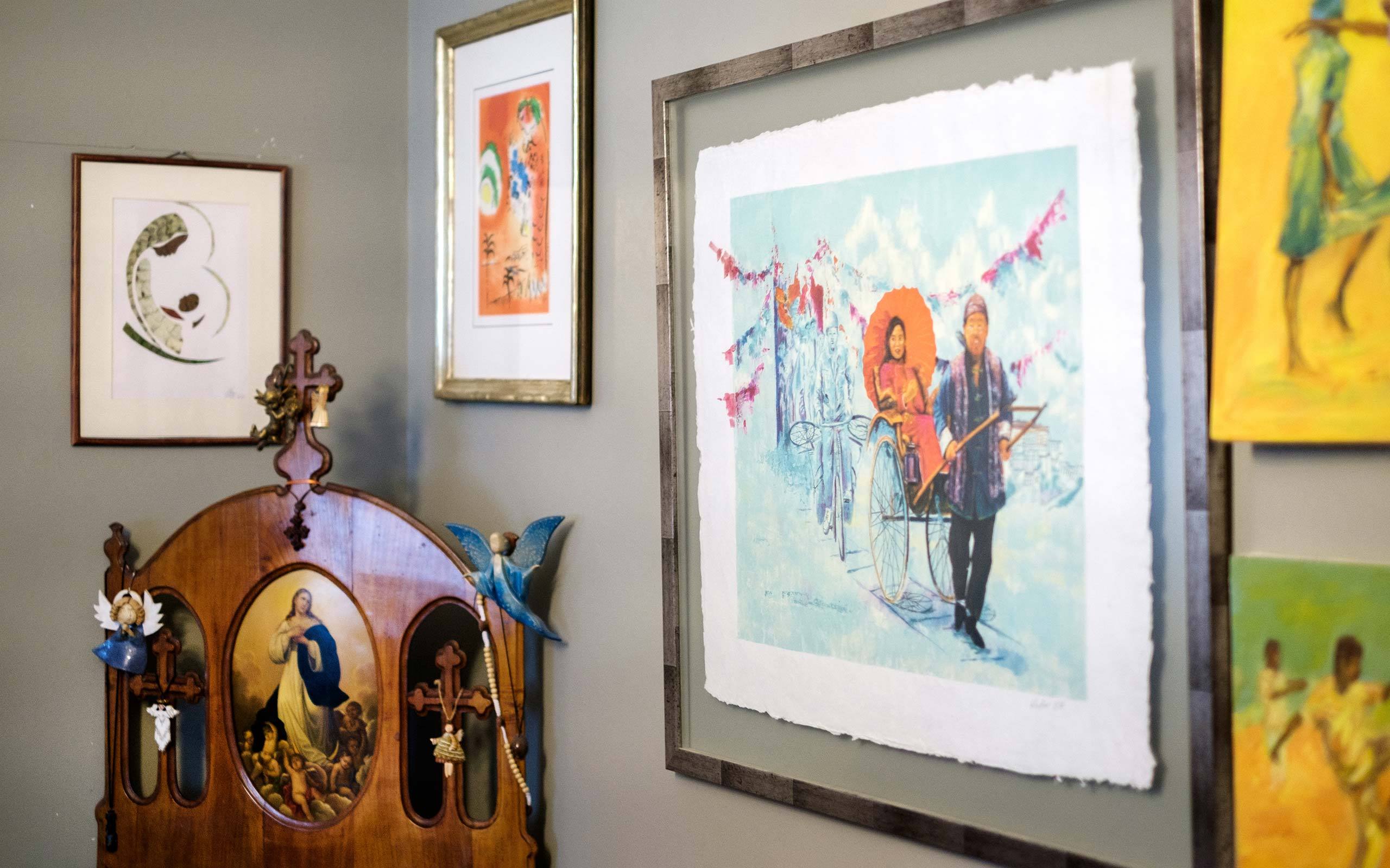 I attend fairs to further my education. I actually never intend to buy anything, but most of the time it happens. But look around, there’s hardly any space left! This painting, for example, is by Julian Opie. It hasn’t found the right place yet, I bought it at the last Art Basel Miami. The girl in the painting looks exactly like my granddaughter. I was fascinated by how the child’s eyes follow you as you move around the room. But I don’t really know yet where it will finally be hung.