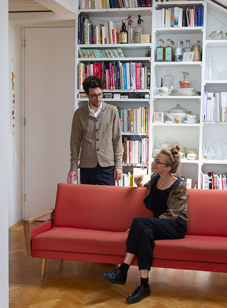 The studio of Miriam Strobach and Gregor Einetter is located in the attic of a magnificent house in Vienna’s inner city, the former apartment of the designer Helmut Lang. These two creatives are the founders of the agency “Le Foodink”, which combines design with culinary matters, as well as observing and commenting on the bustling Viennese art scene. We spoke with them over a glass of Kalê, one of their own creations, among other things, about savoring new impulses in Vienna’s creative and artistic scene and about living with art.