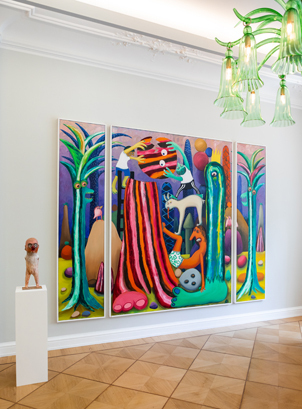 View in the salon of the Miettinen Collection with paintings by Janne Räisänen, Alexander Basil and Amoako Boafo