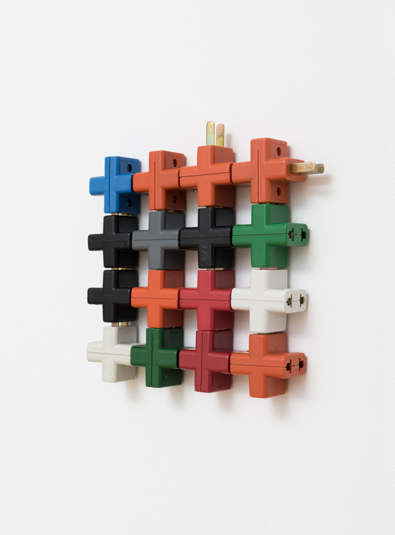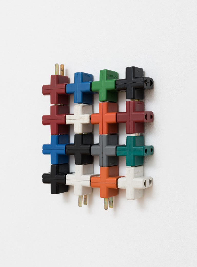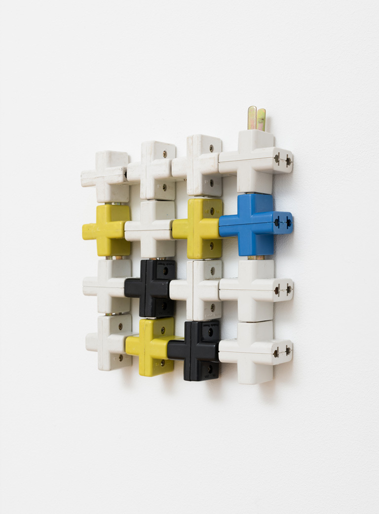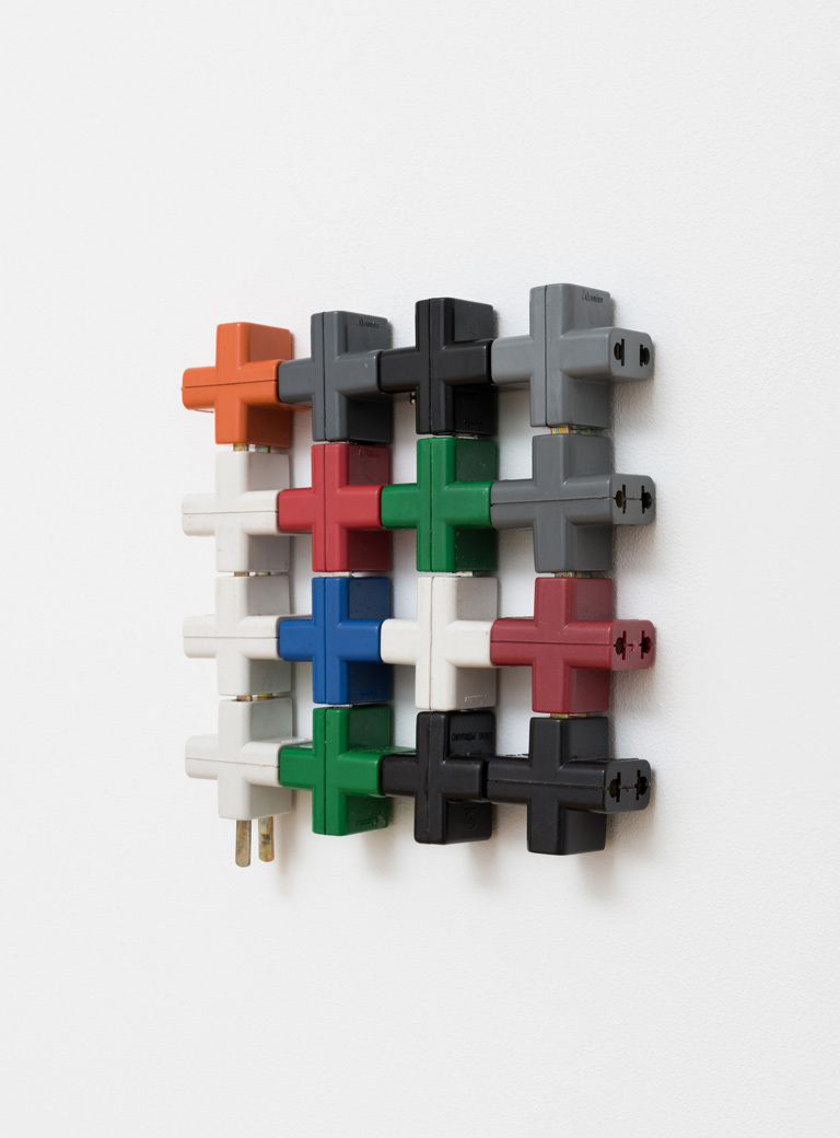 For her new series Adapters Anna Jermolaewa found objects in the street markets of Bolivia and Peru – power adapters in a variety of colors – to use as sculpting material. When combined, these simple forms – crosses, blocks, right angles – serve as a meeting point for the conceptual and the minimal with their occasionally gaudy colors a reminder of their humble origins – the cheap and everyday – in the possible poetics of the unremarkable, the mass-produced. Not only aesthetic, Jermolaewa's sculptures have a function: through the chain of connections one could conceivably plug in an electrical device. These multi-plug adapters not only adapt electricity; they adapt to a new situation, a new reality.
