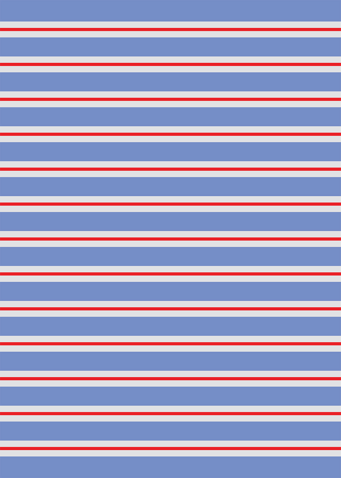 Each shirt made varied use of the colors Red, White, and Blue, the design elements of the American flag. In the tradition of Dahlgren's search for minimalist form and his notorious obsession with stripes naturally none of the T-Shirt designs included any stars, but only stripes.
