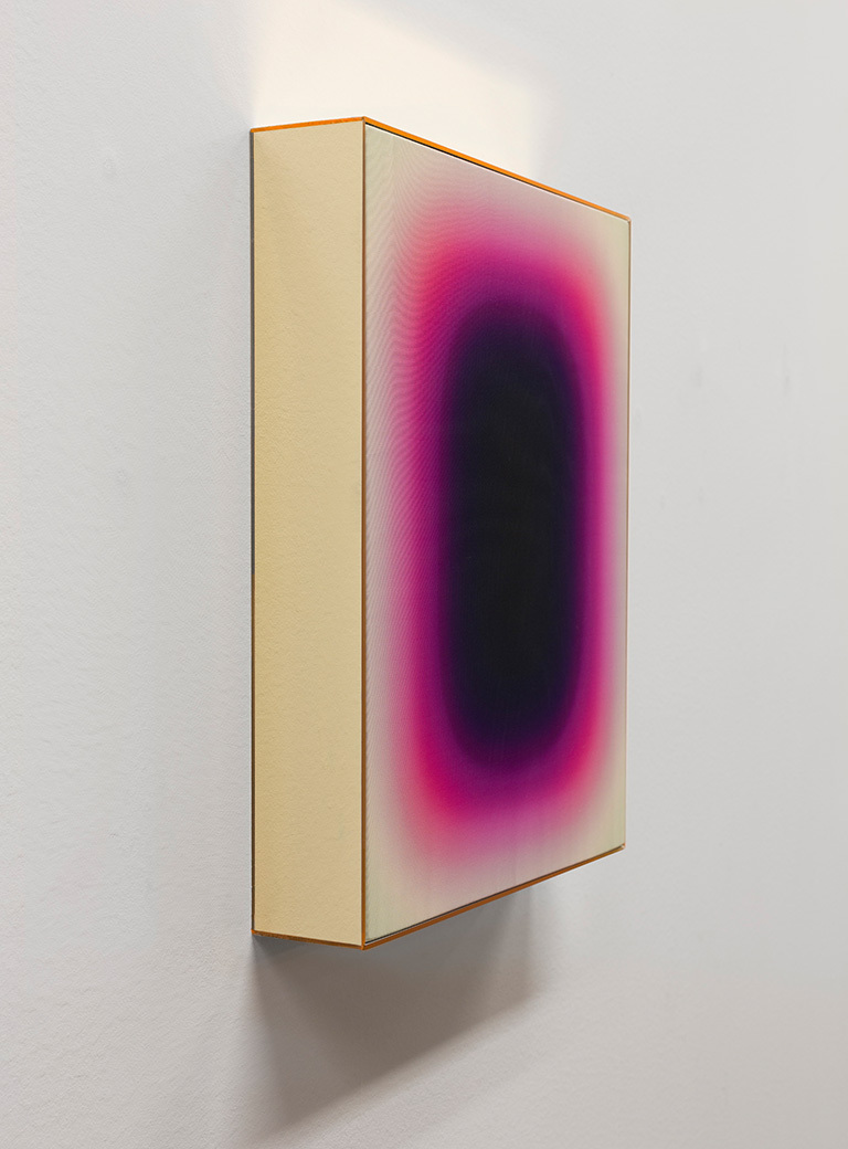 Jonny Niesche (*1972 in Australia) lives and works in Sydney. Steered by the visual metrics of the Glam Rock era and its cosmetic counter culture, he creates sublime paintings, sculptures, and installations that wrestle with the perceptions of colour, surface, and spatiality. By employing complex steel fabrications, mirrors, and digital painting processes on transparent fabric, he brings forth an experiential trigger that is part psychosexual, metaphysical, superficial, and rhapsodic, luring the viewer into a personal moment of “performative contemplation.”