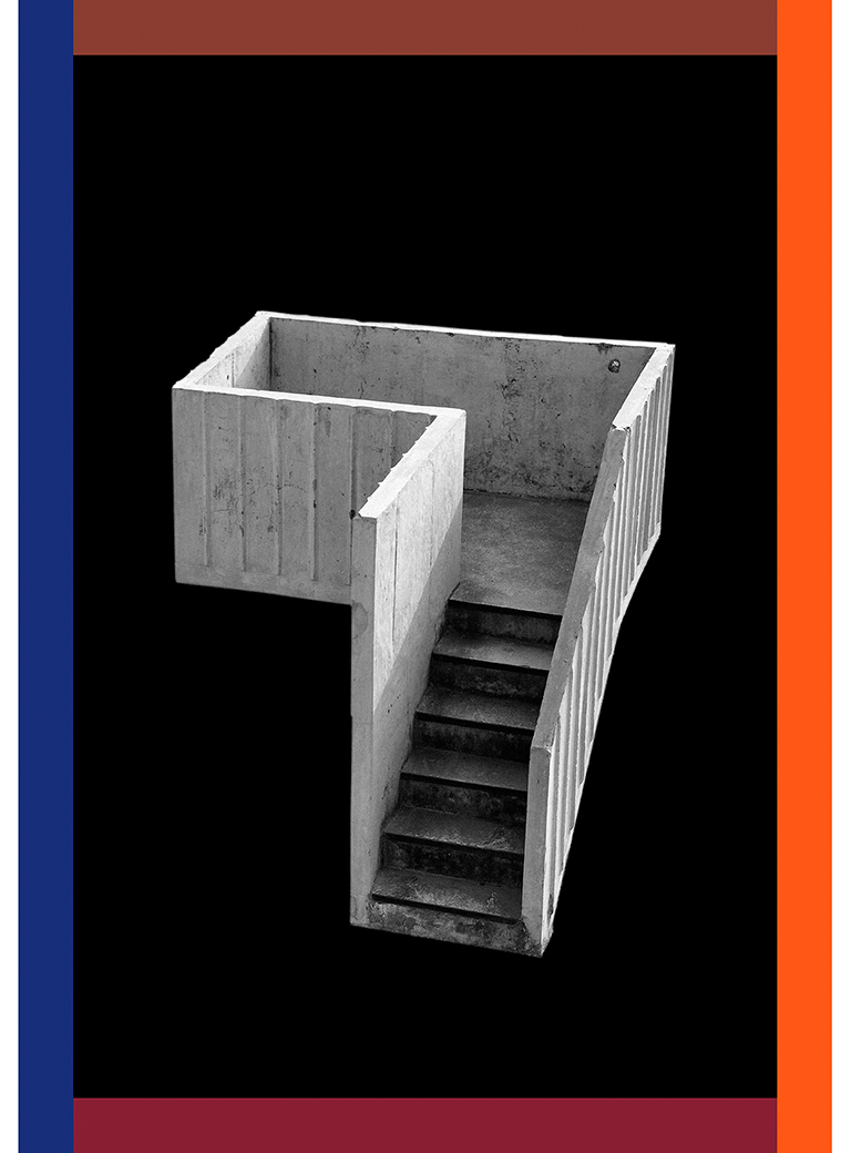The central motif of the series If Colors Could Speak presents an architectural piece derived from the utopian planned city Chandigarh in India, conceived by Le Corbusier during the 1950s. A speaker’s podium, poured in concrete in a brutalist manner, floats as a futuristic relic of a failed Modernist utopia against the backdrop of a black void.