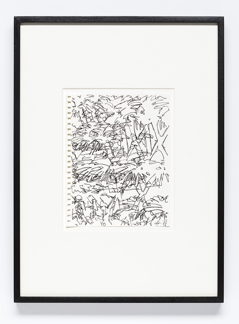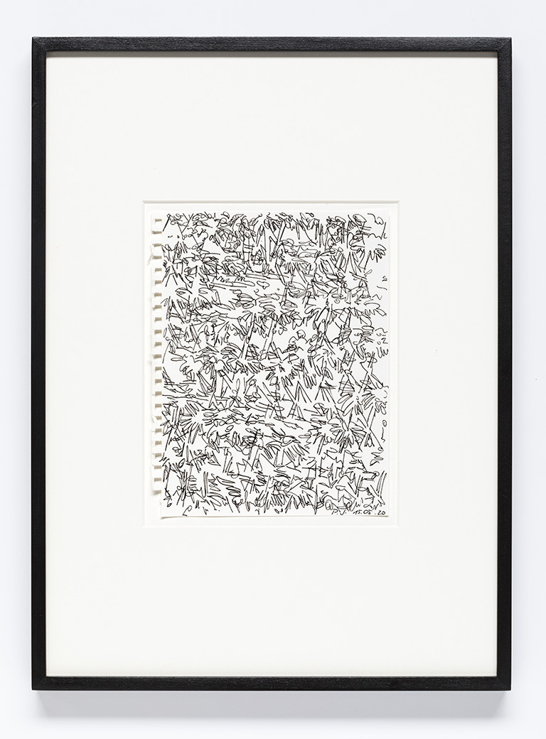 His encounter with these absurd replicas prepared the ground for a series of works by the title Palm Tree Antennas that featured details palms organized as rasterized patterns. These ink drawings of palm trees are representative of the fact that our lives are becoming increasingly digitalized and more and more based on data transmission.