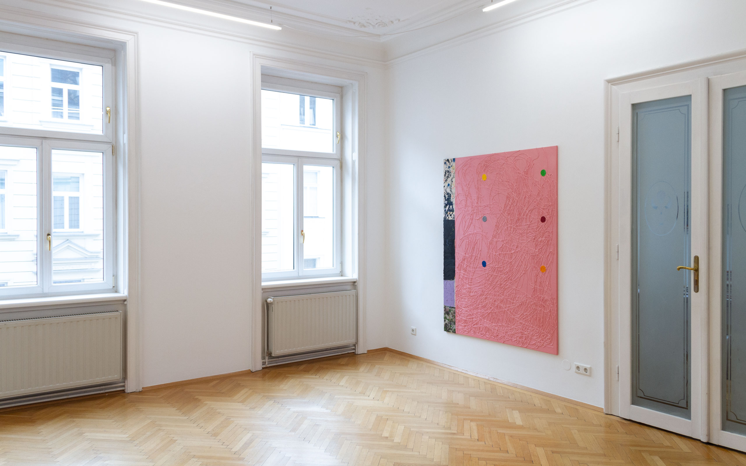 In his exhibition Adieu Tristesse (An Inventory of Losses), Vienna-based artist Max Freund (*1992) turns to questions of transience, memory, and renewal. The title references both Paul Éluard’s poem of the same name and Judith Schalansky’s book, which treats the disappearance of objects, places, and stories as a productive point of departure. For Freund, these two literary anchors become the starting point for a reflection that unfolds through painting, collage, and installation.