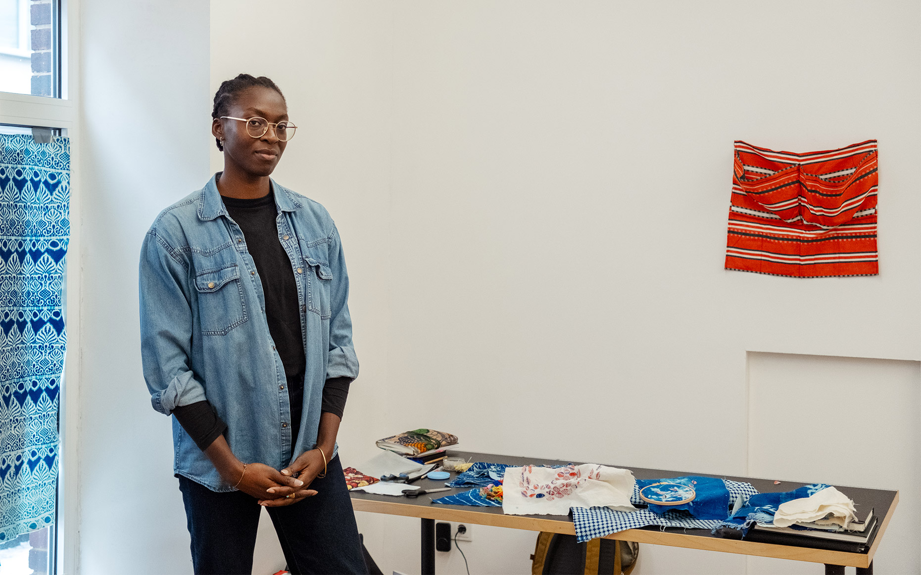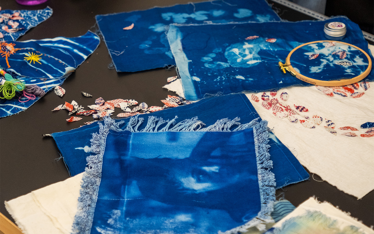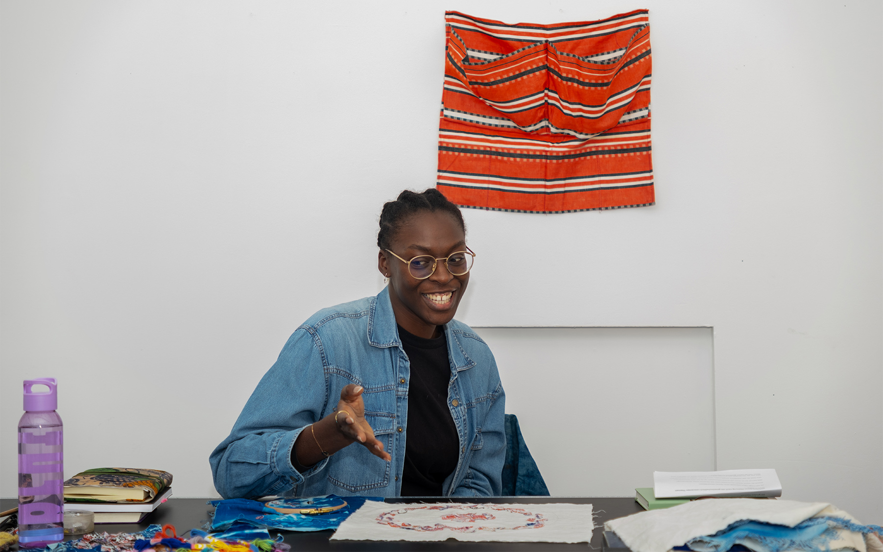 The plan sometimes only comes once I’m already in the process of making. I have a few tools and techniques that I work with, and then the idea emerges. It’s a fluid transition. At the moment, I’m embroidering cyanotypes of the imprint of my soles with colorful threads and “ghana-must-go” cut-outs. I don’t always know what I’m doing, but immersing myself in this meditative state brings the ideas to the surface.