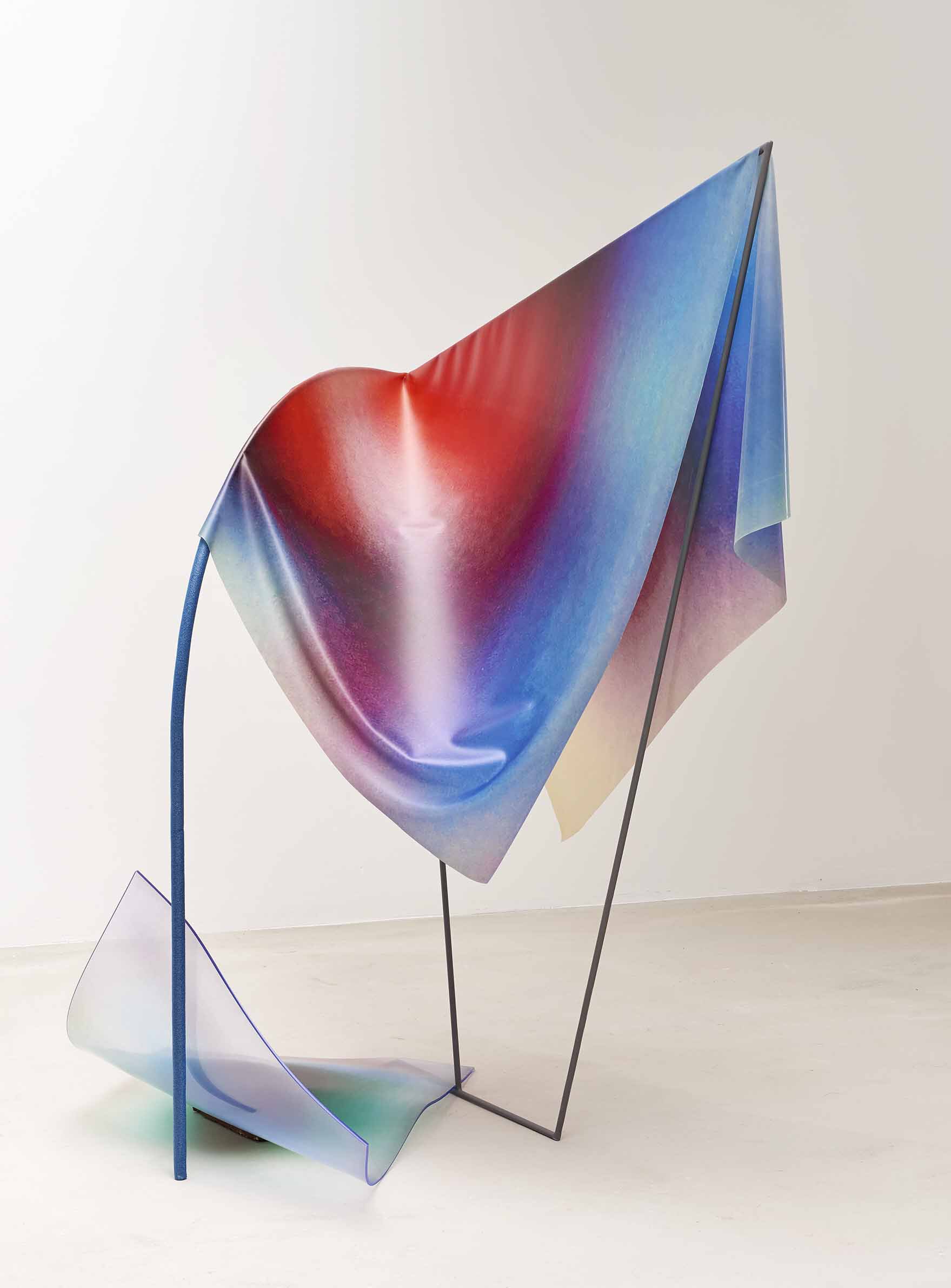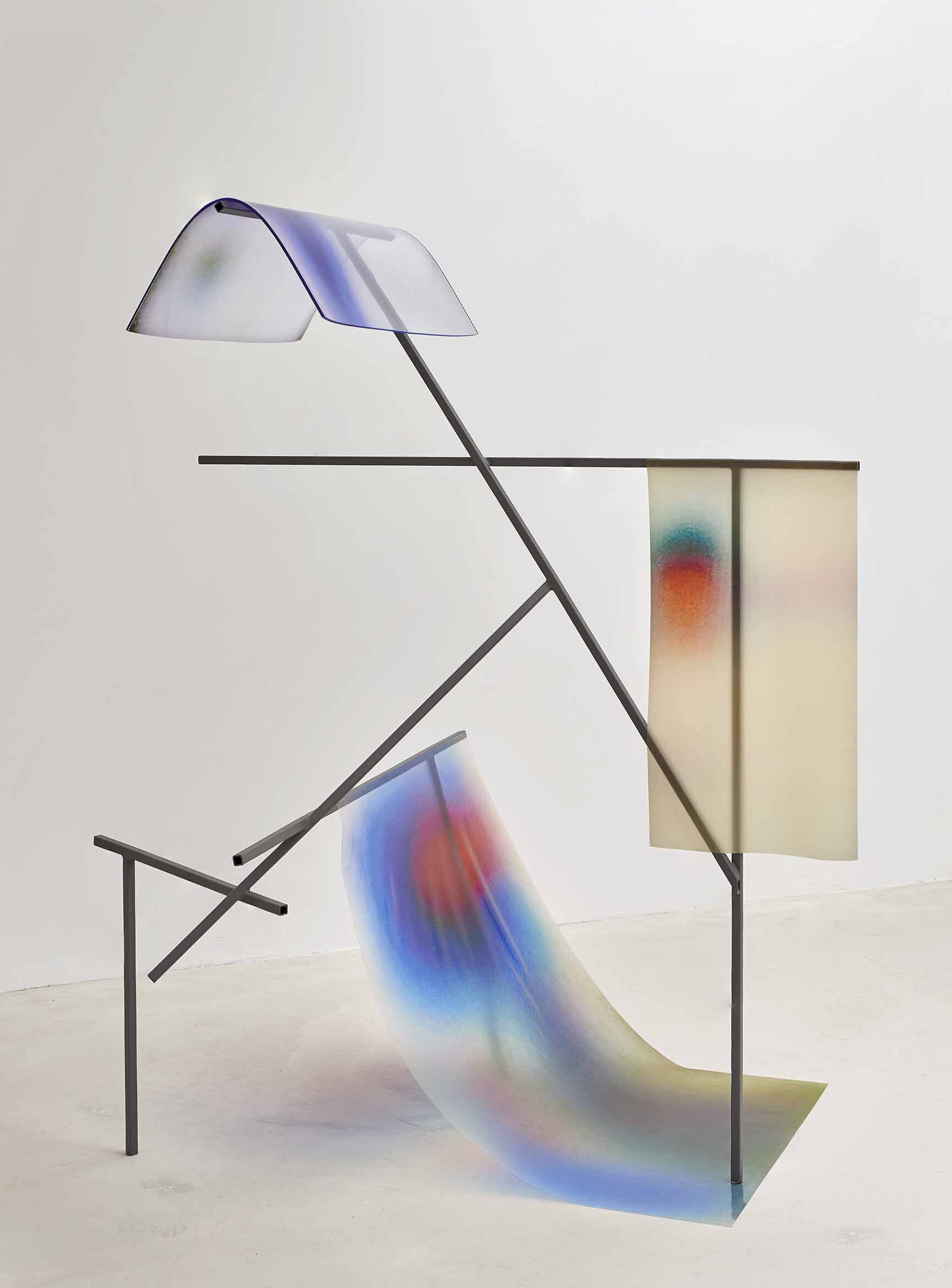 Neutral (puzzled), sculpture, 2015, 154 x 120 x 110 cm graphite grey metal construction and flatbed print on latex, thin plastic and vinyl