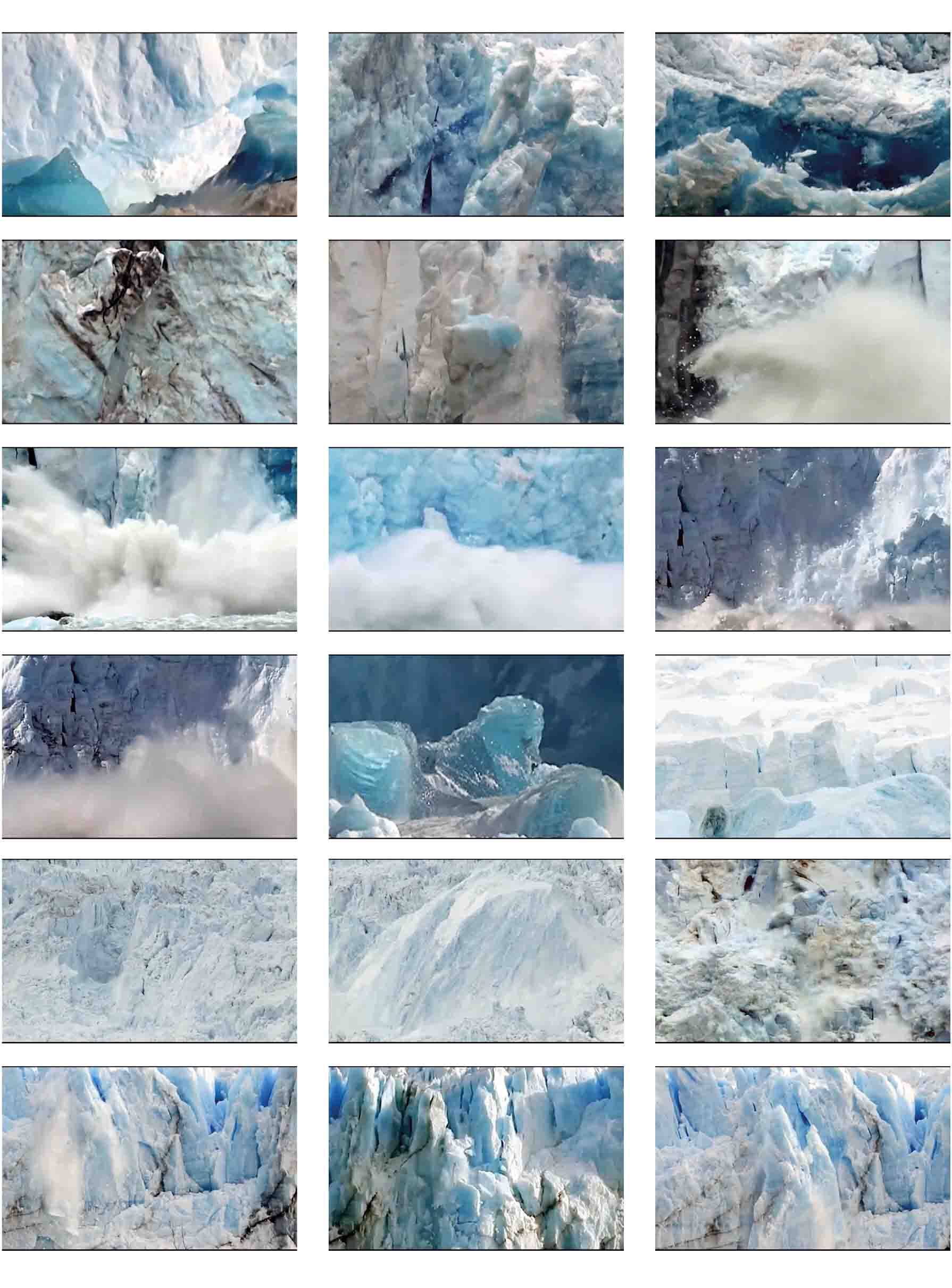It’s a collage of videos that I ripped from the Internet, all of them made by people who take trips to watch collapsing ice caps. It is a natural disaster that is capitalized upon to such an extent that it has become a tourist attraction. People can be heard applauding and screaming with excitement. At a certain moment you hear someone shouting ‘Yeah Baby’ at a collapse – which is partly where the title is derived from. It is as if these tourists own these collapsing icecaps… It has become an absurd and perverse kind of entertainment.