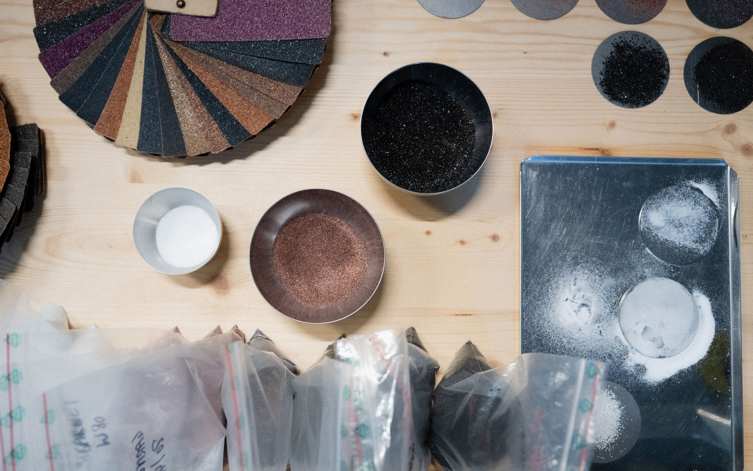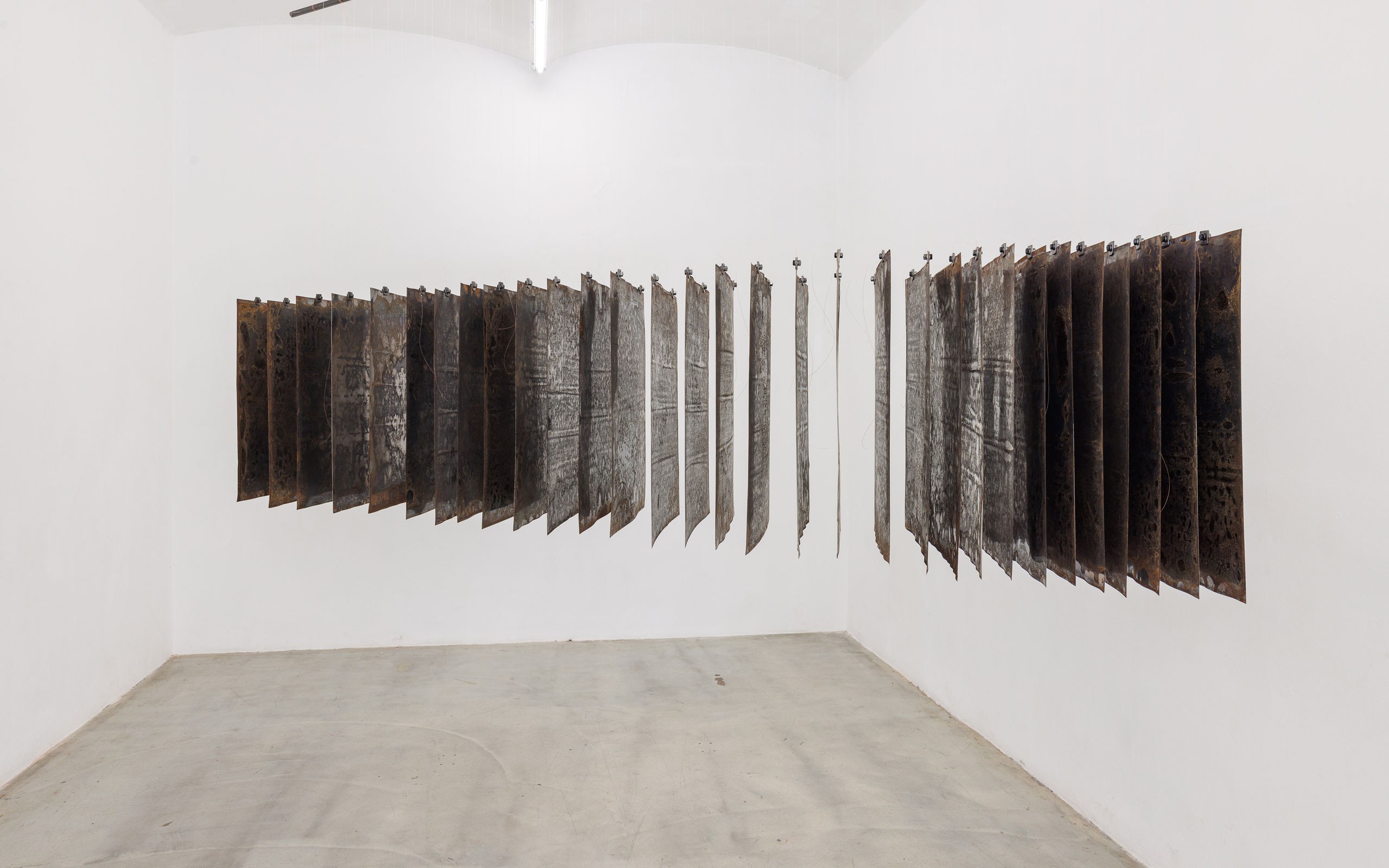 I actually have several work locations, as there are two other production sites where I can carry out welding or laser work. Everything comes together in my studio in Seestadt, where I collect, assemble, and re-collage. I also outsource some things and have now built up a network of industrial and commercial partners. But in this respect, my days are very different… Sometimes I spend the whole day simply researching materials, I like to go to industrial companies and talk to people about materials and their properties and learn new processing techniques or old crafts. Just recently, I visited a sandblasting workshop. I was given various samples of different types of sand, grain sizes, and mineral compositions. But my work process actually starts when I first get up; the first half hour is reserved for drawing and then I don’t know… the best ideas come when I’m in the shower or out for a walk (laughs).