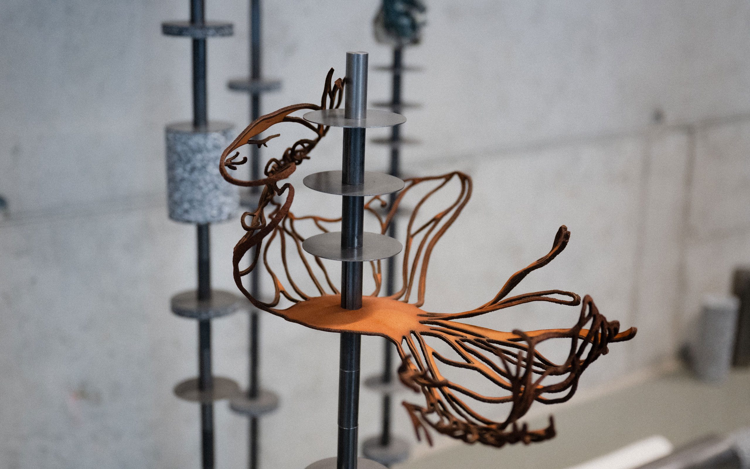Visual artist Bianca Phos explores connections between the body, society, technology, and our environment across media. Through sculpture in particular, she explores somatic relationships and interdependencies with a focus on vulnerability and power dynamics. By consciously incorporating environmental issues and technological progress into her perspective, she offers a particular reflection on the complexity of our existence.