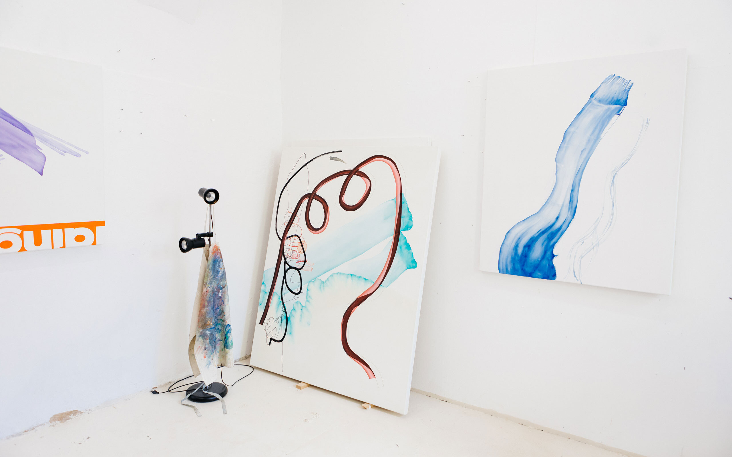 Usually there is something that occupies me, and I look for a suitable stroke that represents it as well as possible. Then I start to transfer it to the canvas. In the beginning I usually have a pretty precise idea of the finished picture, but in the end it always looks completely different. When painting, I have to step back from time to time and respond to what I actually see in front of me. I change, repaint, change again. To work through a concept rigidly unfortunately usually ends in disaster, the process often gives me new impetus.