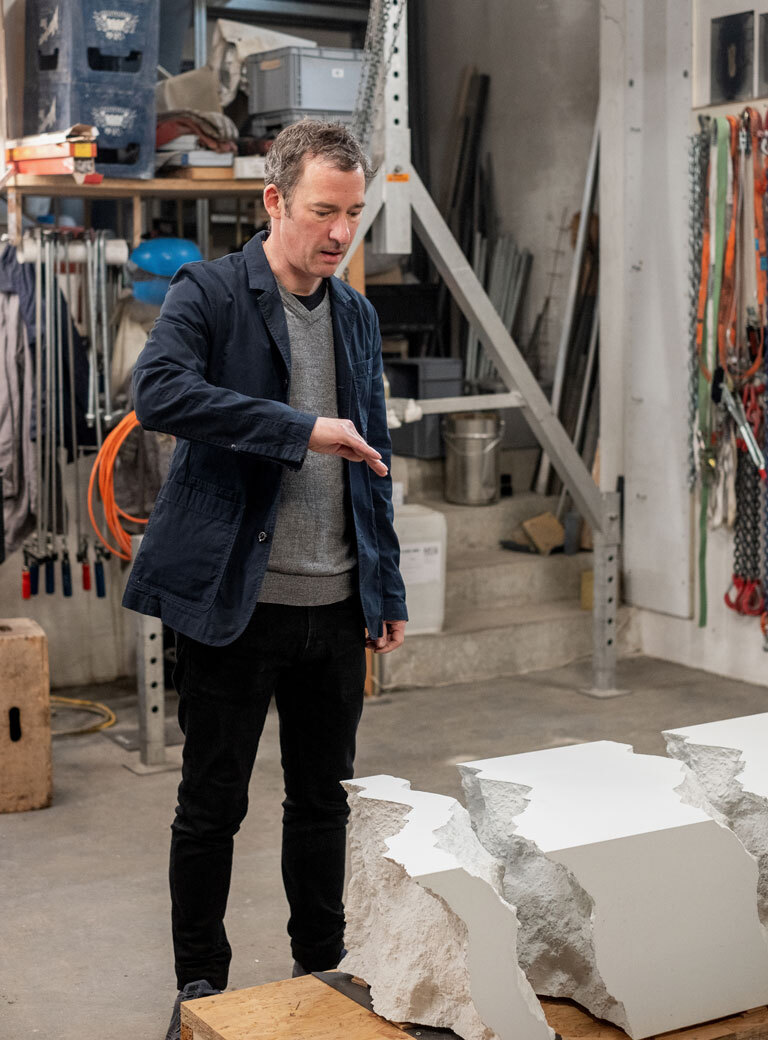 Concrete does stand for robustness, but at the same time it is also quite brittle. I intend to fight against the gray, dull impassivity that concrete represents. To do that, I break it and try to dominate it. Or I manipulate it in its fresh, still very soft, clay-like state. Or I possess it instantly in such an almost fluid state, that as it sets, the fragility is in the foreground; this way, I don’t have to break the concrete first in order to create spatial tension through contrast.