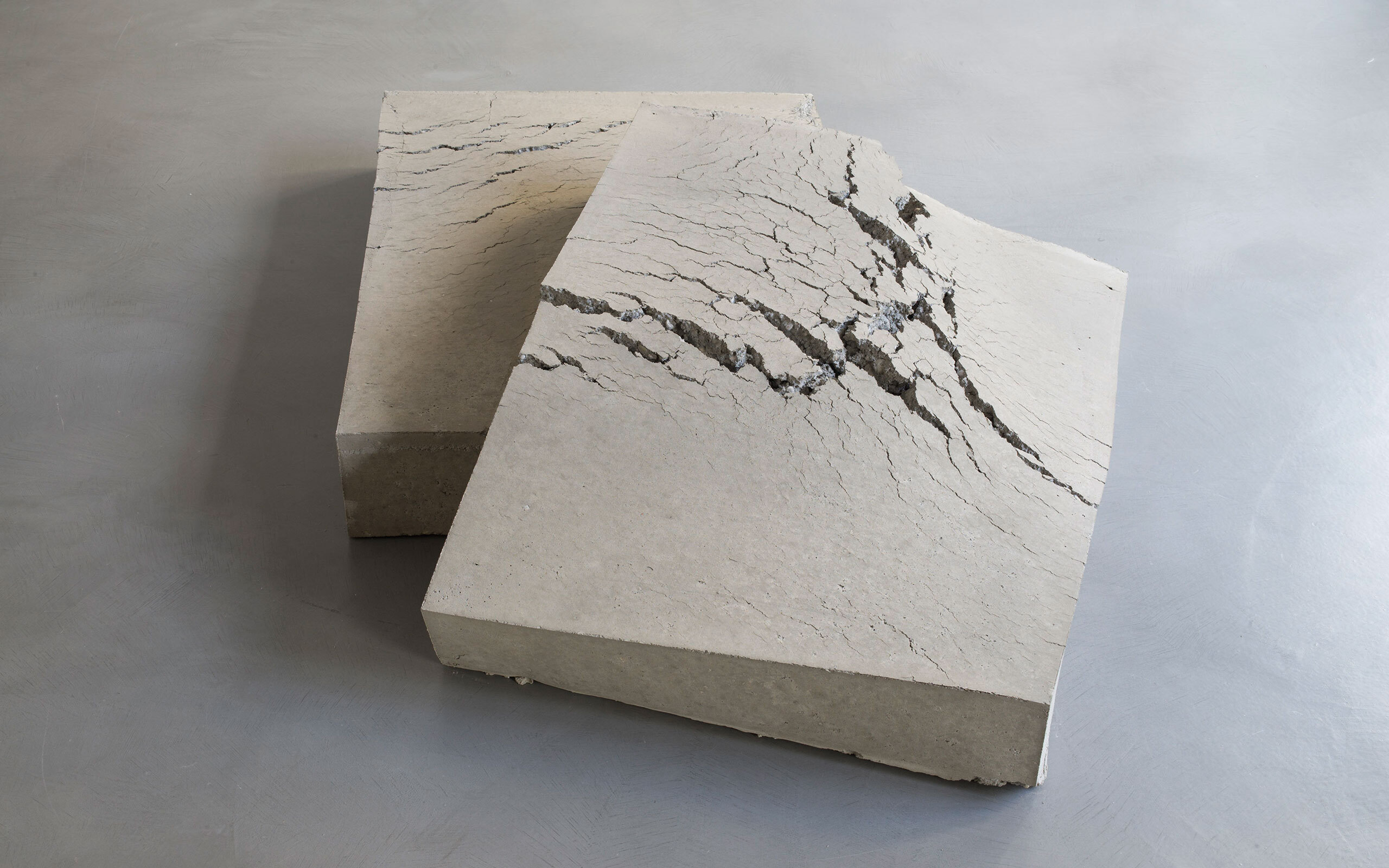 Beton (gestoßen), 2016, Concrete, 2 parts, 30 x 155 x 110 cm, Courtesy Galerie Jocelyn Wolff, Exhibition view: Carton / pierre, Galerie Jocelyn Wolff, Paris, 2016, Photo: Christoph Weber