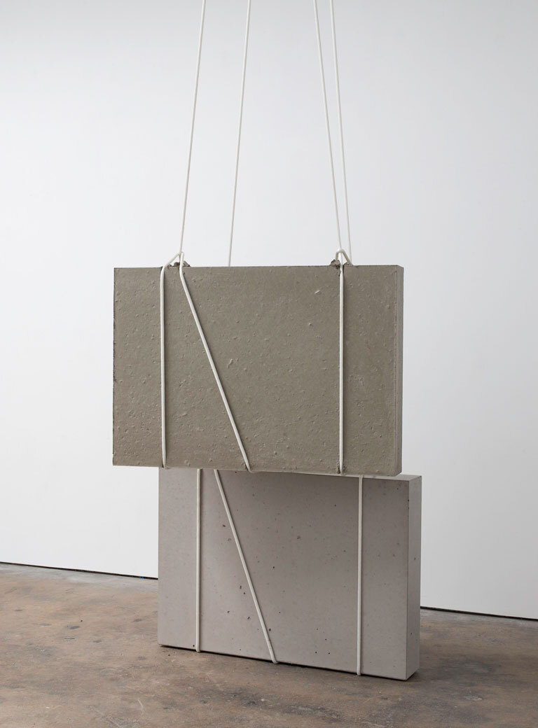 Cast and Uncast, 2018, Concrete, rope, Dimensions variable, each slab 70 x 100 x 15 cm, Courtesy Galerie Jocelyn Wolff, Exhibition view: Contact, Ibid, Los Angeles, 2018, Photo: Christoph Weber