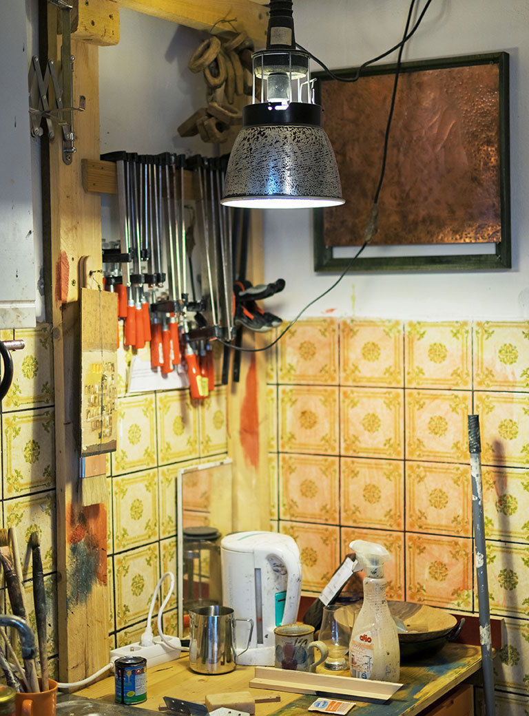 Because my children are early risers I now have a routine. By nature I am someone who would like to sleep in, but I take my kids to daycare and school, and then I go to my studio. Family life helps to create some distance between my work and my home, so that I don't leave the studio and think it is all about me. At home it is not really important that I am an artist, there I am a husband and a father. Therefore I return to the studio with a much clearer mind the next day.