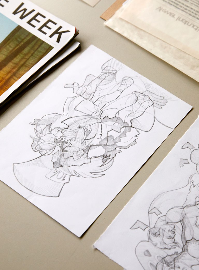 Firstly, I don’t distinguish between art and non-art. To me, everything is equal as material of human expression, be it meaningful or meaningless. I think that expression finds or holds legitimacy in absolutely every form in which it takes shape. Of course, popular culture is a product of capitalism and is more readily ‘consumable’ than niche stuff… but we consume everything today, material or immaterial, people, moments. To me, the boundary between popular culture, underground, or what is considered ‘niche’ is not that clear because I’m not looking at it from an empirical perspective of: “What is the size of the audience?” In that sense, I’m not a numbers girl. It’s all just… stuff, as the enraged Miranda Priestly in the film from The Devil Wears Prada would say: a pile of stuff. At the same time, the history of two-dimensional figurative painting is, in a sense, a history of pop culture. Hieroglyphs are the popular culture of Egyptian antiquity, like utilised iconography destined for a proverbial mediation. It entails a precise relationship between signifiers and the signified. ‘Flatness,’ aesthetical and metaphysical, is fundamental to cohesion, to narrative building, to image making, to organizing, to constructing.