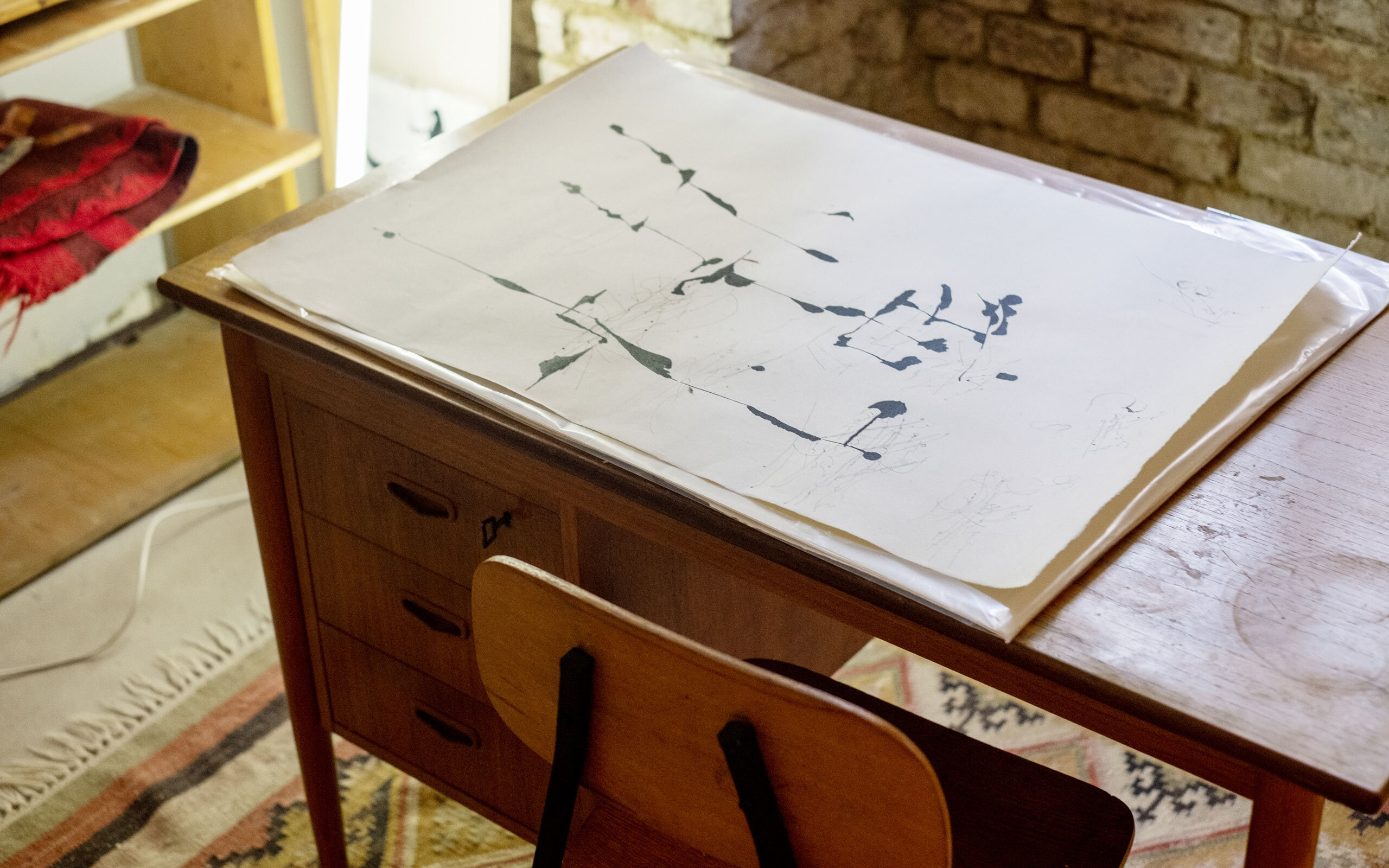 It is mostly intuitive and spontaneous. I develop the gesture increasingly further by repeating just two or three strokes. The more often one repeats something, the clearer it becomes. In design, it is not unusual for a logo to be worked on for a year. It becomes more and more precise the more you repeat and look at it. Drawing is comparable to writing notes and painting is like making music.