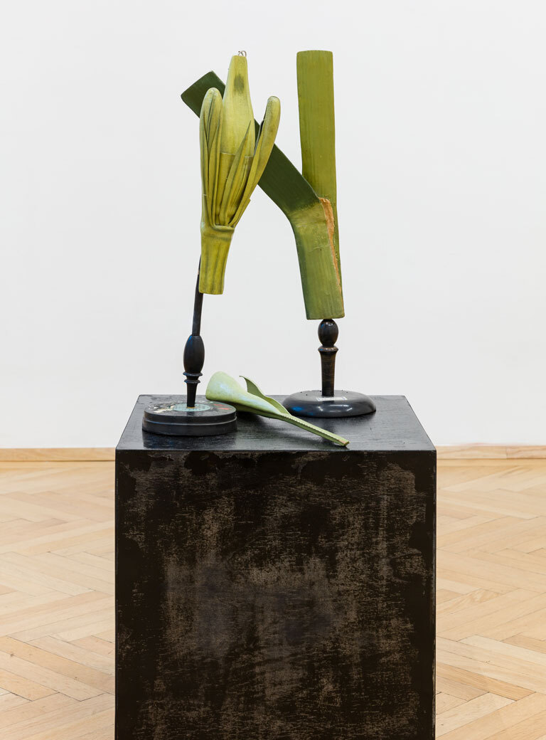 Kerstin von Gabain, who is a sculptor herself and curated the exhibition, had the idea that we build a bridge between the botanical models as sculptural counterparts of my work and my paintings. So I made the pedestals and used them to make sculptures for the first time. They were meant to be as simply cobbled together as are my picture frames. These models have such abstract qualities, and the pedestals were meant to act as an introduction to the paintings. The pictures shown were then a kind of combination of painting and graffiti. In Vienna, you see a lot of Art Nouveau architecture and metal lattice gates that pick up floral elements. The plant forms are actually pretty close to the natural forms. Writing, after all, originally copied the representational. The wrought iron elements often have a more beautiful sweep than the graffiti drawings.