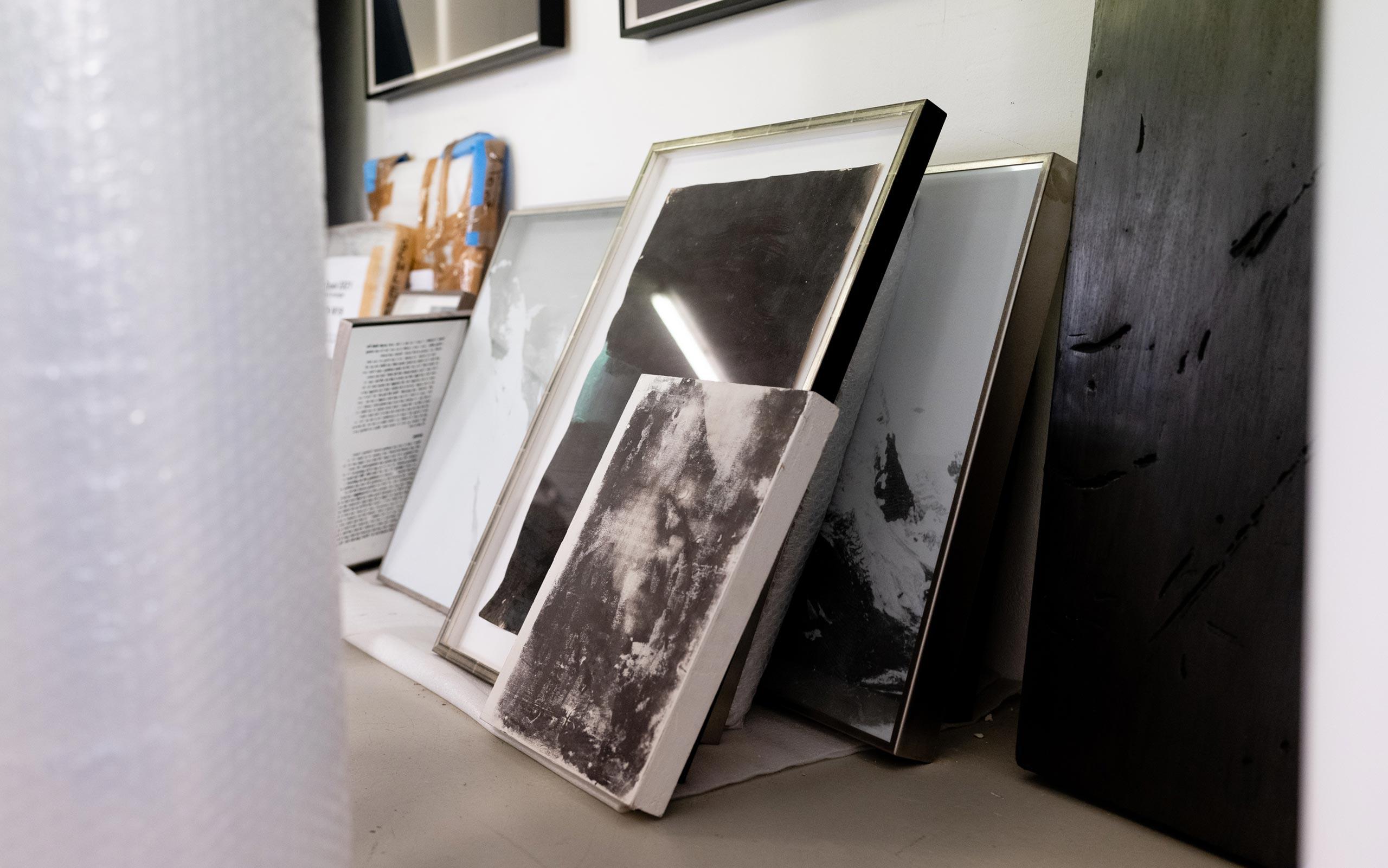 During this year of crisis, I read the grammatology of Derrida (an approach of the philosopher Jacques Derrida, in which he develops his theory of writing) – although with the help of a dictionary of foreign words! At that time, I created abstract architectural models out of glass, and randomly placed books behind water glasses, and then saw the text blur. I thought: “If I leave out everything that is too beautiful and kitschy, only the text remains.” So I photographed the texts in graduations of blurriness and printed them onto large scale glass plates. I leaned them against the wall, overlapping; and everything was suddenly out of focus. You could see the structure – that those texts were poems or scientific treatises – but you could not read them.
