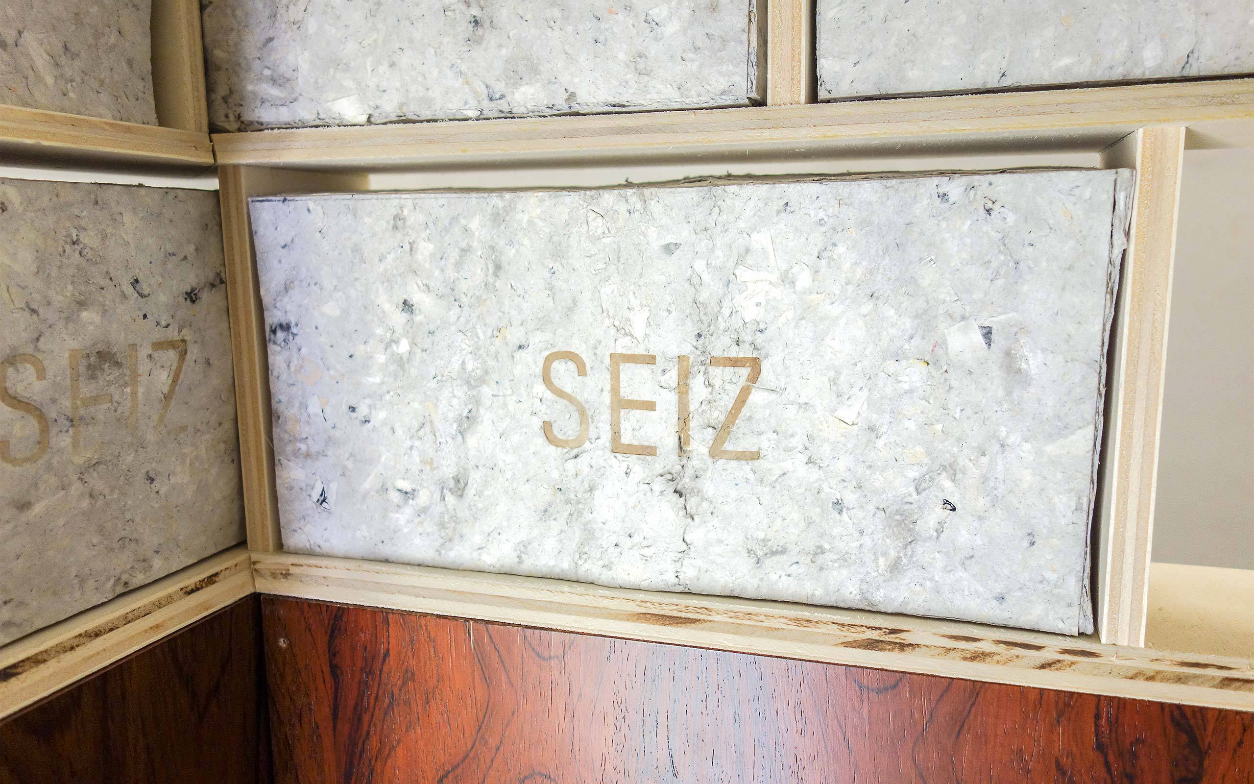 This is stricter and more reflected than one would believe at first glance. Regarding the works dealing with the issue of bricks for example, which I create with papier mâché made of my old drawings, everything has to comply with the brick size standard, which is almost obsessive. I am more interested in the information I find in reused materials than how it looks in the end. The 200 drawings which I can compress onto a small piece of papier-mâché, have vanished, but are somehow still there as information.