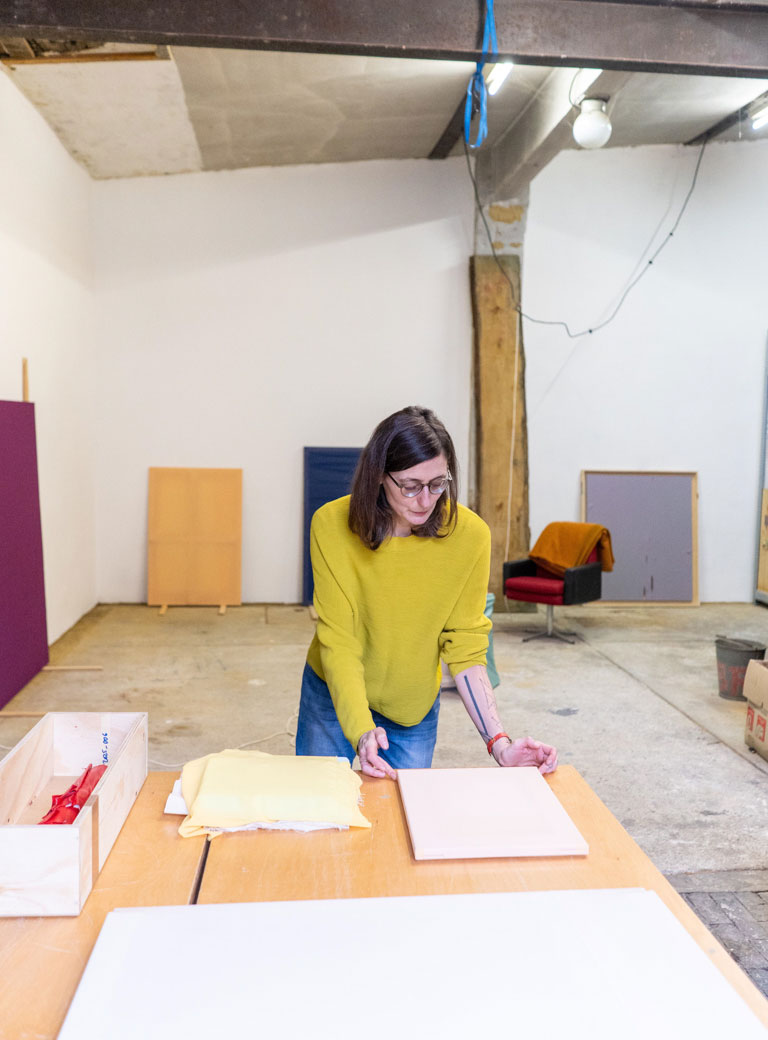 I’m interested in the questions I can formulate about a picture, that I ask from painting in general. They have to do with chance, with letting go, with observing and perceiving; I want to surprise myself artistically. However, this is not happening when I just produce the umpteenth folded picture. I love that I work with gallerists who totally get this and never ask: “Could you do seven more of this?”
