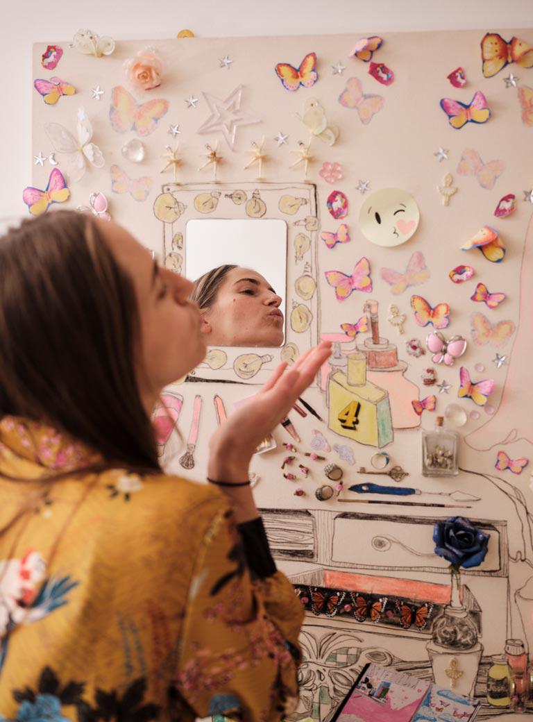 Reclaiming technology as a positive space is part of my mission. Behind the glitter is this idea that we as artists are world makers. I think that world exists not only on canvas but in our homes and in our own minds as well as on the internet. I would like to inspire people to be more themselves. When people see my vision boards (inspirational collages made up of images of things you want in your life) they look like they’ve been done by a child, one who’s very skilled at drawing but who like, went to a craft store. I’m able to bend the global internet – that’s a terrifying thing. A lot of artists direct attention to the darkness of technology but I want to use it as a creative medium instead. That way it becomes fun and playful while still addressing serious topics like fake news and digital manipulation. I deal with people’s expectations of gender and technology and power and I’m not someone who wants to fight against systems from the outside. I take the rules, whatever these rules are and however terrible these rules are and try to make them do unexpected things.