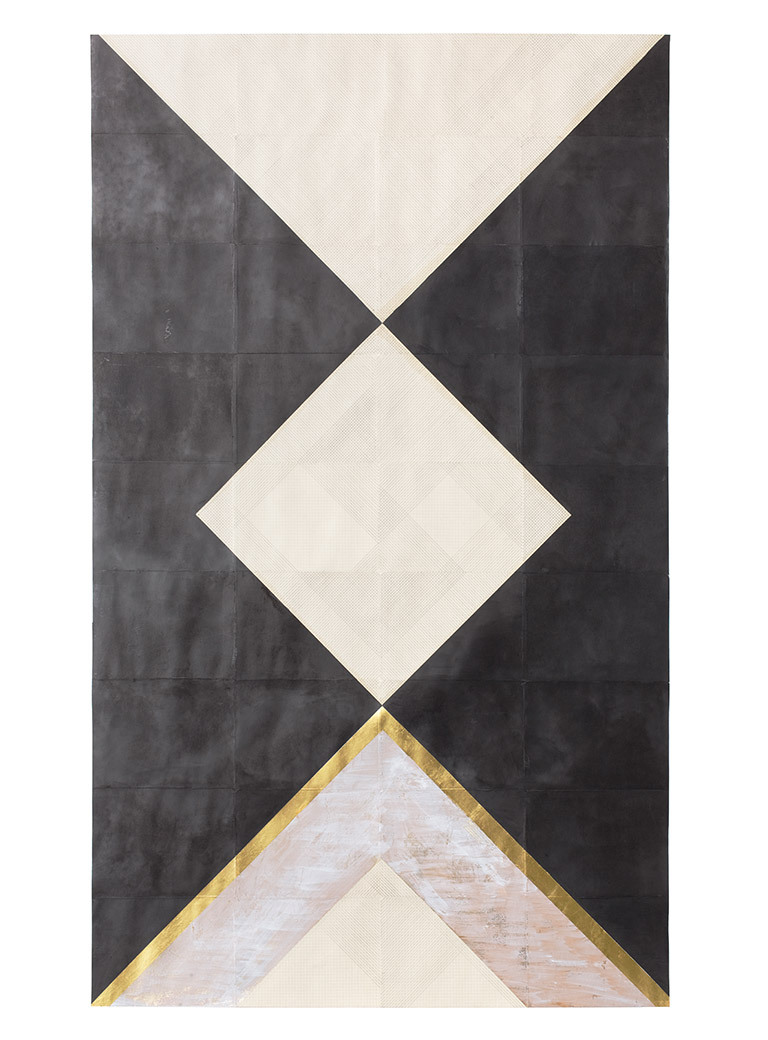 My works are also influenced by traditional systems of order and patterns as can be found in the teachings of Sufi art and architecture which has for centuries contained a tradition of ornamentation placing great symbolic value in geometry and mathematics. However, I use this knowledge in a very abstract way because both my patterns and systems are strongly formable. This way, a new visual space evolves which is not fixed, but has the capacity to be manifested in the most varied ways. By integrating random irregularities in the pattern and order systems of my work, a recognizable image of latent deterioration is gradually created and is observable over time. Such infractions that constantly shift our perception invoke order and chaos, repetition and fragmentation.