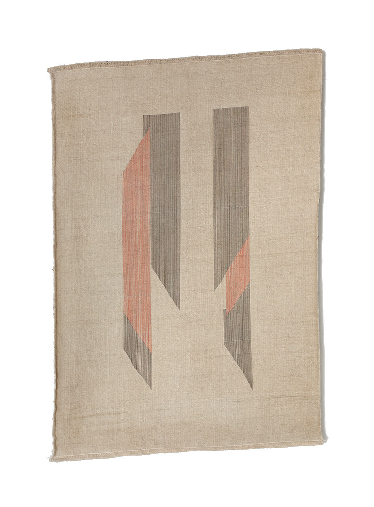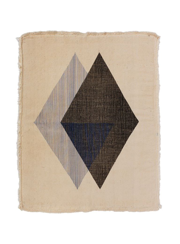I treat the hand woven carpets from Sirjan (a town in South Iran) like a blank surface, like paper or canvas. In most cases, the carpets have no pattern and are woven from pure natural wool. Each of these weavings has its own form and grade of strength. The result therefore often deviates even when measurements are given. Small mistakes and inconsistencies occur like an imperfect grid. The interesting thing is that I have to calibrate the work process and the grid completely for each new piece. Not before I hold the carpet in my hands can I begin with a new design.