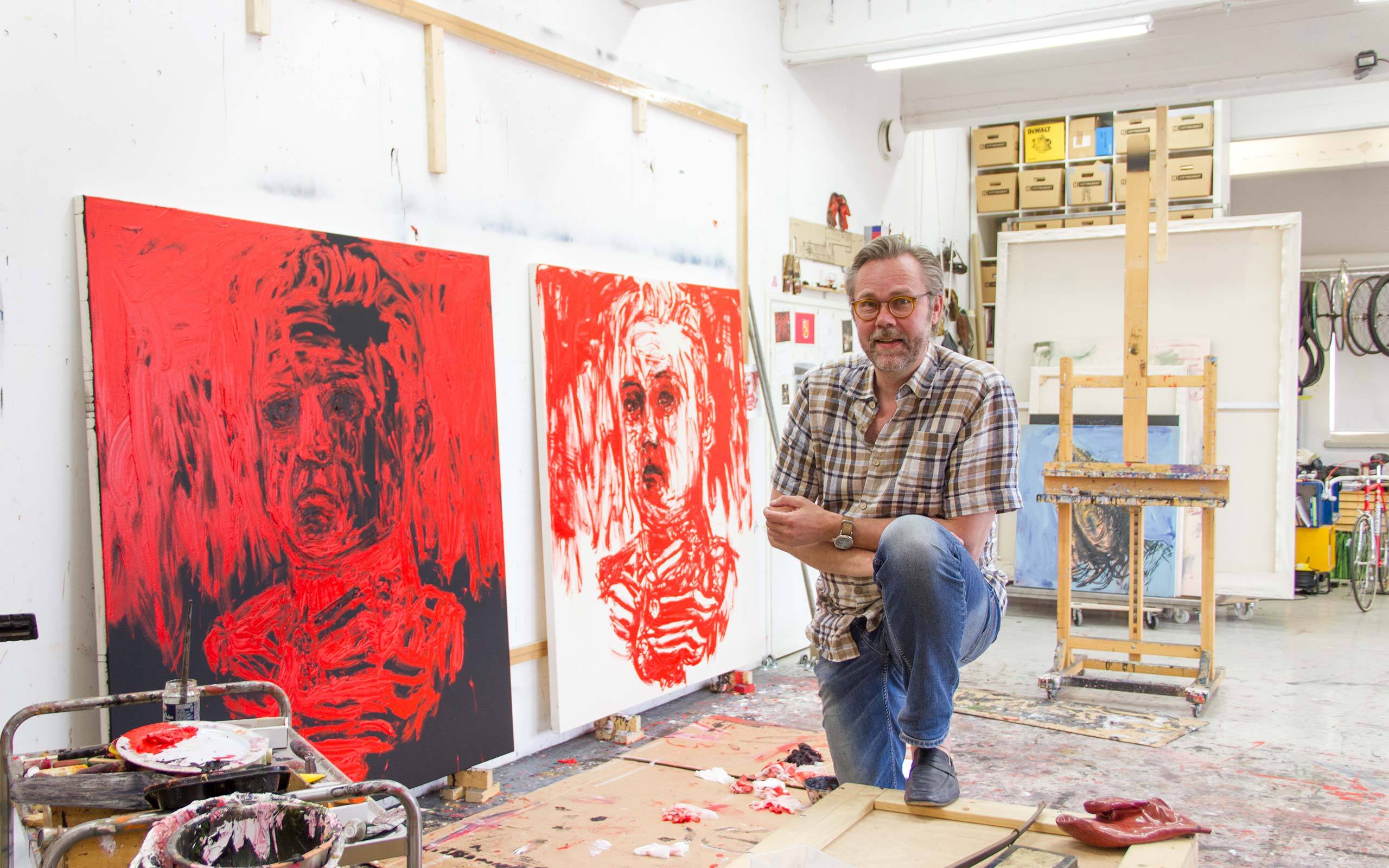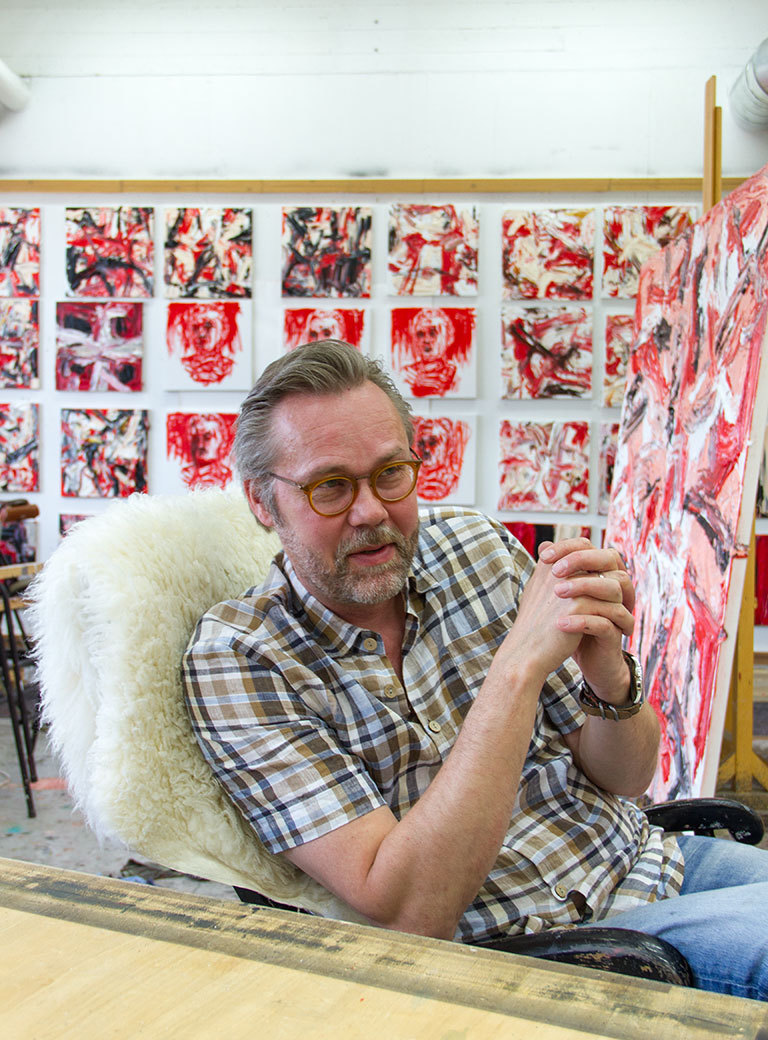 Heikki Marila’s work of more than twenty years has covered an extraordinary range of topics – from biblical motifs, self-portraits, wobbling vertical lines, floral paintings referencing sixteenth- and seventeenth-century Dutch still life painting, and maps of suburbia. His work has been inspired by the history of art, and in his recent paintings also by Lutheran Protestantism. Marila’s works are endowed with an extreme physicality that often conveys an exaggerated sense of drama and often irony. Sumptuous layers of paint conceal powerful social messages and sentiments. We sat down with Heikki in his Turku studio in the Southwest of Finland to discuss, among other subjects, his most prominent work cycle, his floral paintings, and his artistic contribution to the Finland’s one hundred year anniversary.