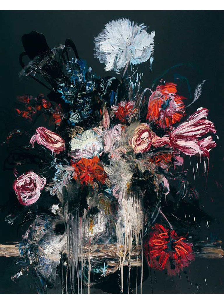 When I started with the flower paintings, I intended to paint beautiful paintings in unconventional ways, provoking a contrast between the flower painting and the material. Having said that, it is important to note that I never painted flowers, but paintings of flowers on the basis of original flower paintings of the sixteenth and seventeenth century masters, which makes all the difference. I’ve always tried to use existing forms as it gives me the freedom to explore the essence of a painting.