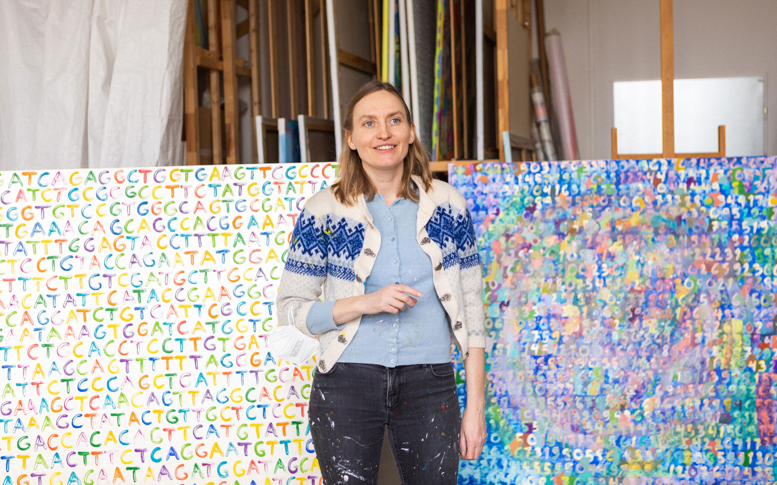 I love science, and it’s insanely fun for me to think interdisciplinary. Originally, as I just mentioned, I started painting to illustrate and celebrate the creativity in the scientific process. And that’s still inside me, too. I often use parts of the scientific process and translate them into my art: Pieces of data, gene modules, and many other things, but it’s not simply illustration, it’s inspiration. There are many topics in science that interest us all. We are experiencing a paradigm shift in many fields: genetic engineering, life on earth, climate change, our relationship with nature, among others. We are witnessing the emergence of many good innovations, but also many bad ones. The evolution of life, questions of astronomy... My art is characterized by a scientific view of the big picture. What does it mean to be a human being and an individual?