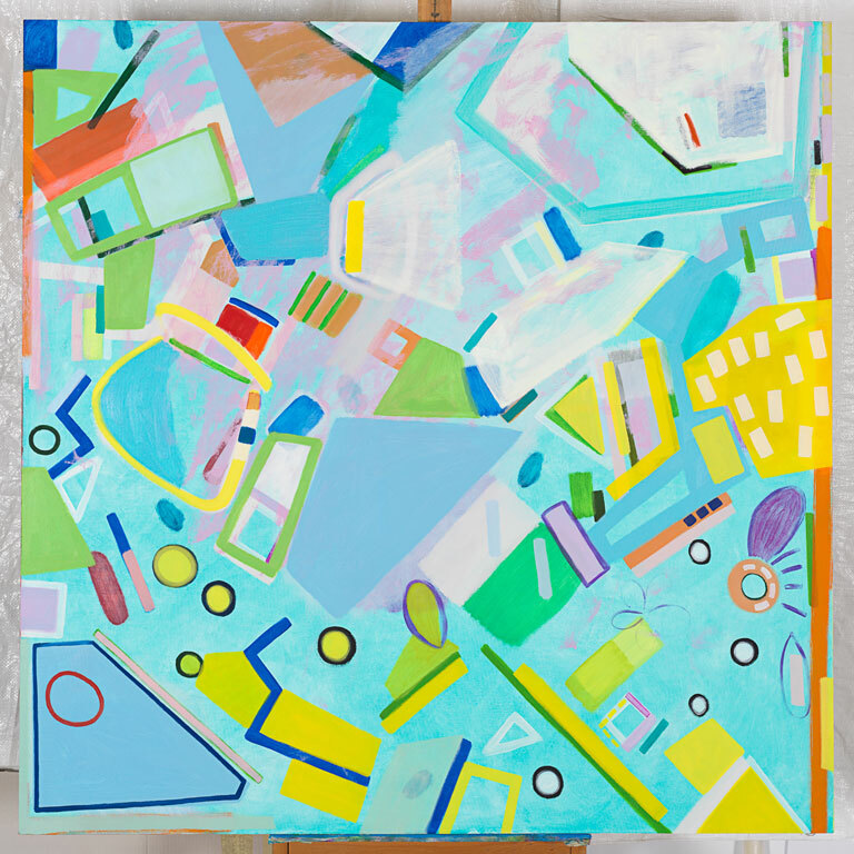 I think in colors and let myself be guided by my physical intuition. In painting I can work with layers and thereby express diversity and emotion. The layering of colors and the interaction of pigments creates very interesting, expressive art. Painting also allows me to work on a piece for a long time and change it over and over. Painting over also helps eliminate previous ideas. I have so many ideas that hide or shine in space. Painting is a great tool for that. Then, for me, it has a lot to do with the physical, the bodily. I could never work digitally. Even in mathematics, I’ve always printed everything out or written out calculations in longhand. There are so many mathematicians who detest working with computers. I just can’t think on the computer when I’m doing art. I already have so much to do with computers in my regular job. I don’t want that in my art, too. I can turn finished ideas into presentations on the computer. But the creative process before that, the brainstorming, doesn’t work digitally for me. Quite often I just draw with a pencil on paper and make little sketches.