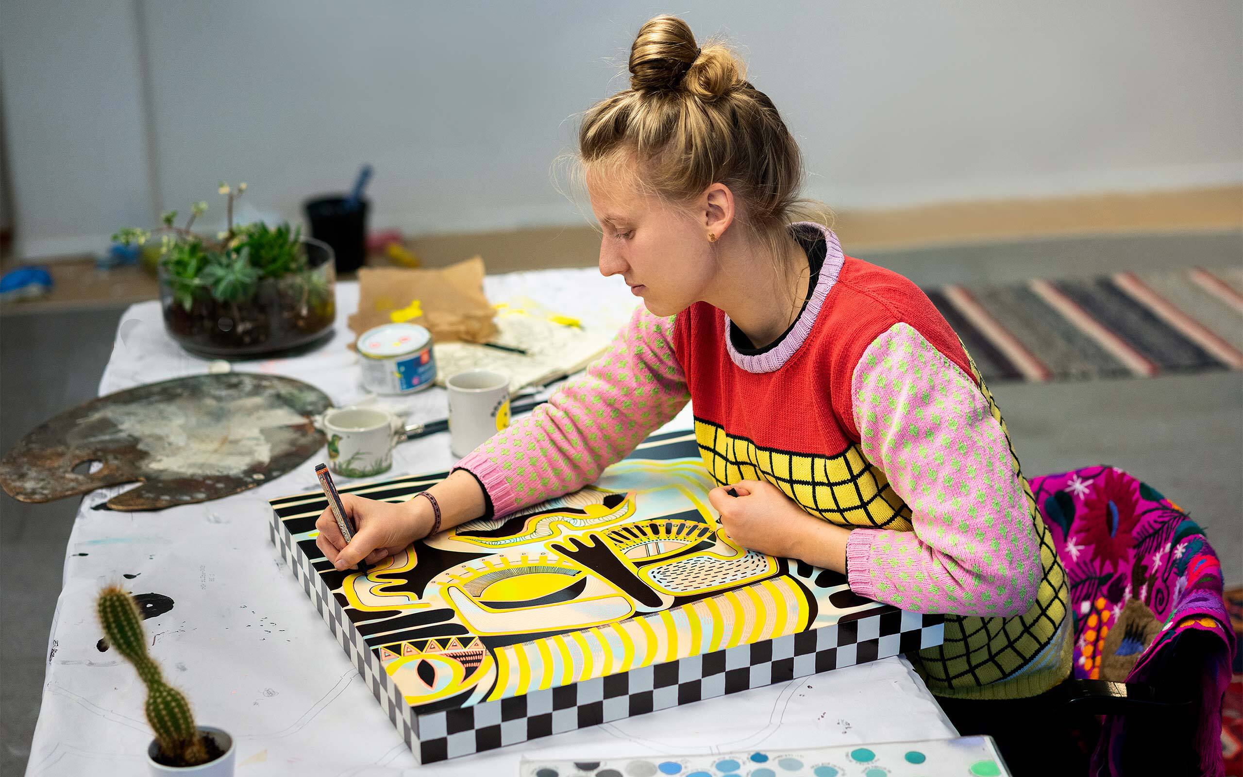 With the huge success of the new central library Oodi in Helsinki we can see that there is a need for more non-commercial public spaces. That need was why I co-established Sähinä (a cultural center in Helsinki) five years ago. When I came back from my trip abroad after high school I wanted to start painting. But where do I want to start painting? I wanted to work amongst a community of creatives and for our workspace to be open with also a possibility for passersby to pop in and share ideas. With a friend of mine we made this dream come true. (Stella designed the logo for the center.)