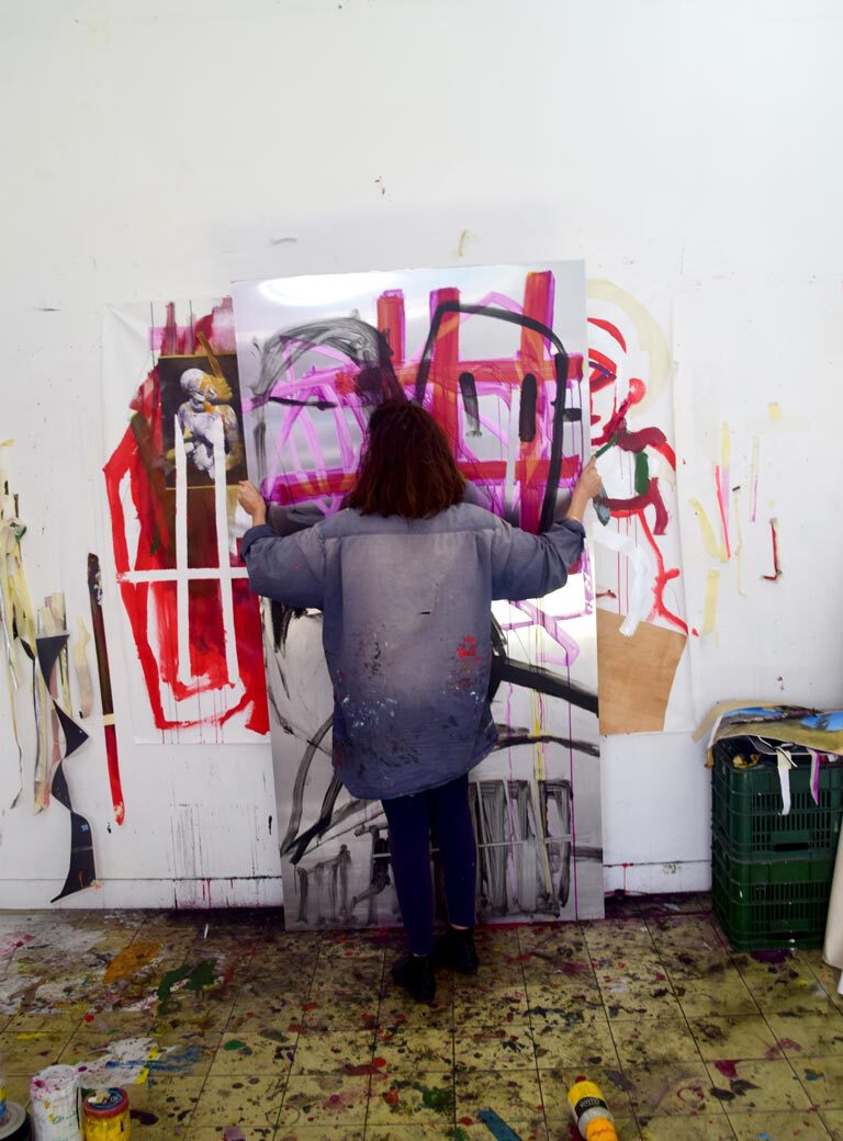 Yes, the size of the paintings is very important to me. I experience painting as a very physical process, and working with a small canvas makes me feel tied up and restricted. I also respond to the spaces I work in and try to play with them, be it a museum or a gallery where I’m presenting my work, or on the walls of my studio. For me, the act of creating is essentially the act of opening myself up to the world.