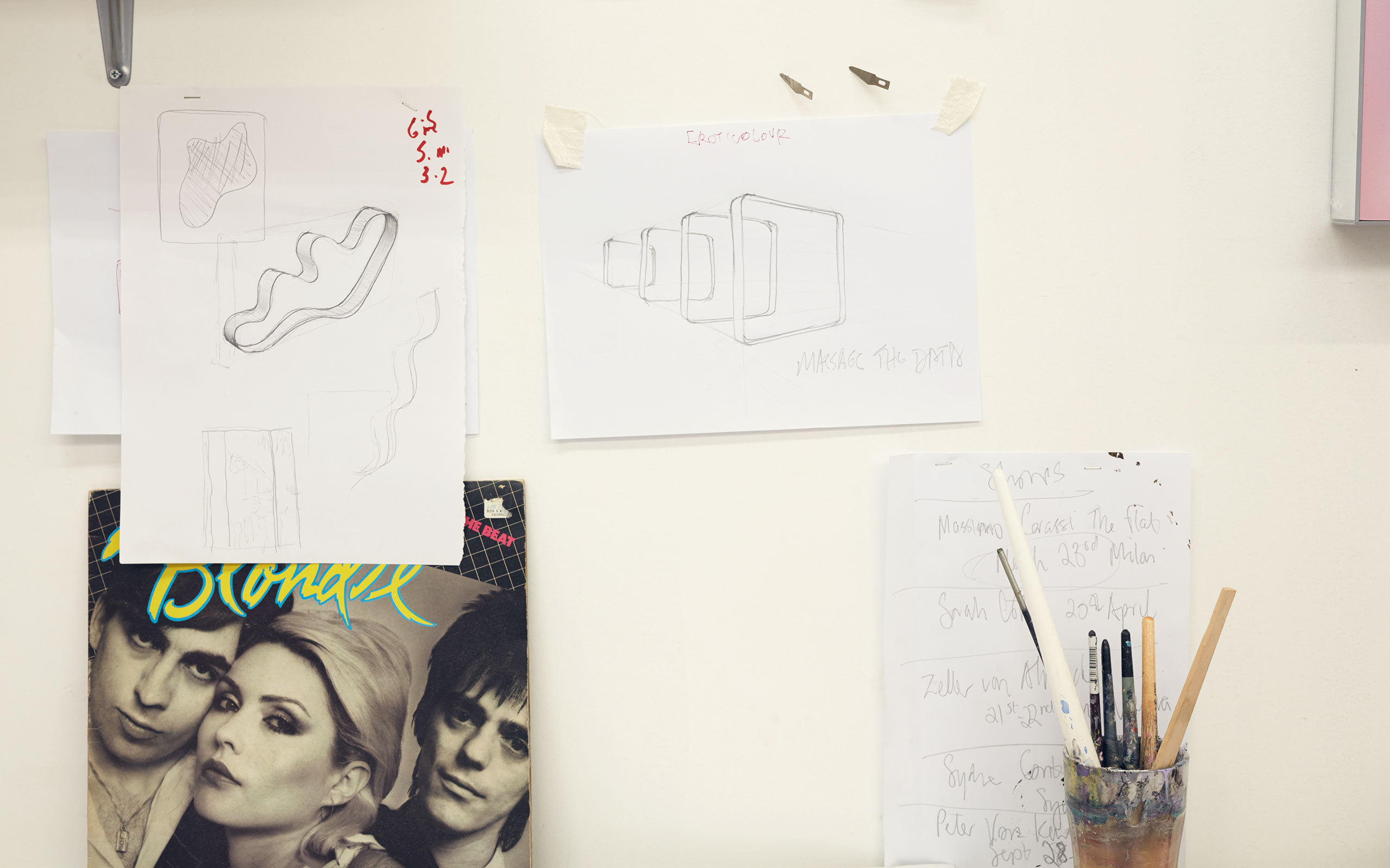 I don’t see him take much interest in my work, actually. He doesn’t really have an opinion about my work. But I like watching him make things. And I see the same obsessive moments in which he completely disappears into creating something, which is when you can’t hear anything from him for hours. But he loves going to the studio and collecting the material I am using like little pieces of mirror. He is then taking his finds back home, playing with them, turning them into his own thing, which is wonderful to watch.