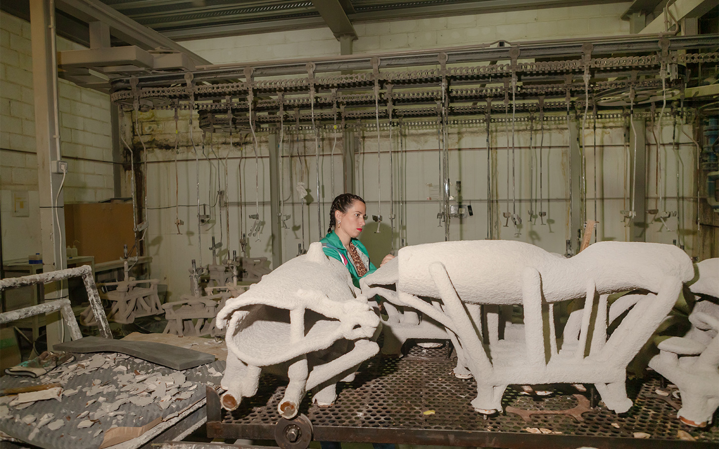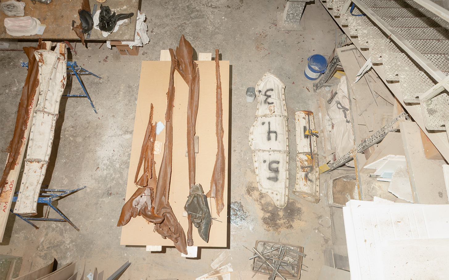 In the beginning I might have been working with found objects, mixing them into an assemblage. But the last 10 years I learnt how to make molds, to experiment with other techniques and procedures, how to integrate things… I make or reproduce most of the elements myself departing from existing shapes. Apart from pieces like straps, recycled truck canvases or ventilation pipes, that I use with other purposes.