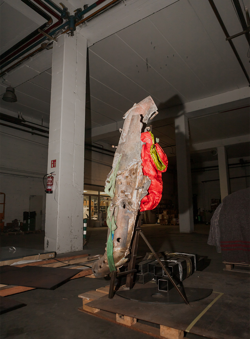 You are also using straps to hold some of your objects against a wall, and by doing that, you add tension. I even had the feeling that the sculpture somehow wants to break free from the wall…