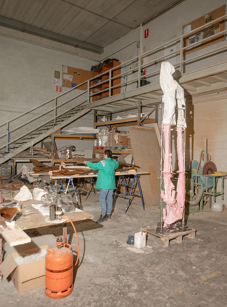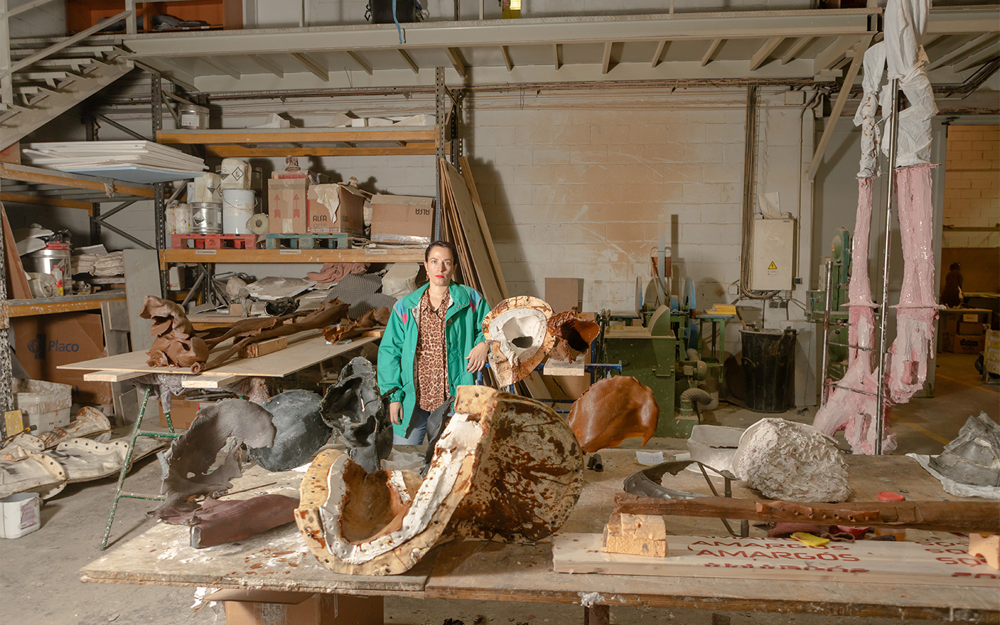 June Crespo is a sculptor who expresses her physical feelings and intimate relationships in her body through her work. She amplifies and projects them onto the materials. These she mainly creates herself, using different molds, and eventually makes the elements fit. Her sculptures do evoke genderless bodies, monstruous, delicate, fragile and vulnerable at the same time.