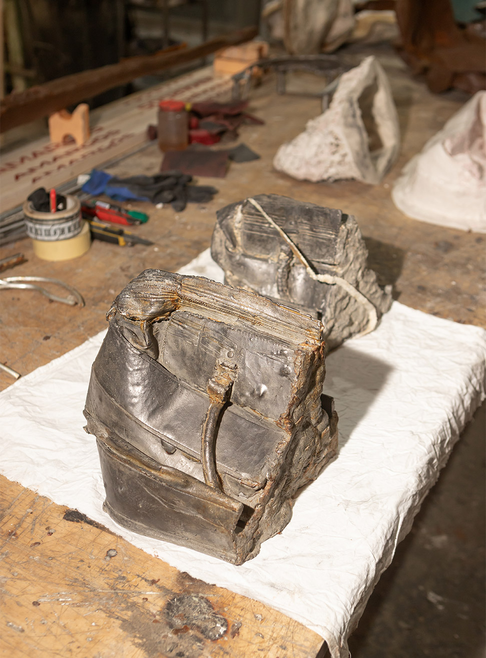 These came from mannequins I found in Netherlands during a residency. In Venice, I casted these torsos in metal, pushing the technique by placing industrial pipes and profiles from windows or other structures inside. In the beginning, these works were related to Henry Moores “Helmets Heads” series. The torso was like an armor or helmet to protect yourself, where the inside and outside surface and spaces are totally related. Now, you could of course see them in a narrative or figurative way, as just two superposed torsos. But the uncanny to me were the holes left by the missing arms, heads and lower body. Those active holes were the most important element of the torsos!