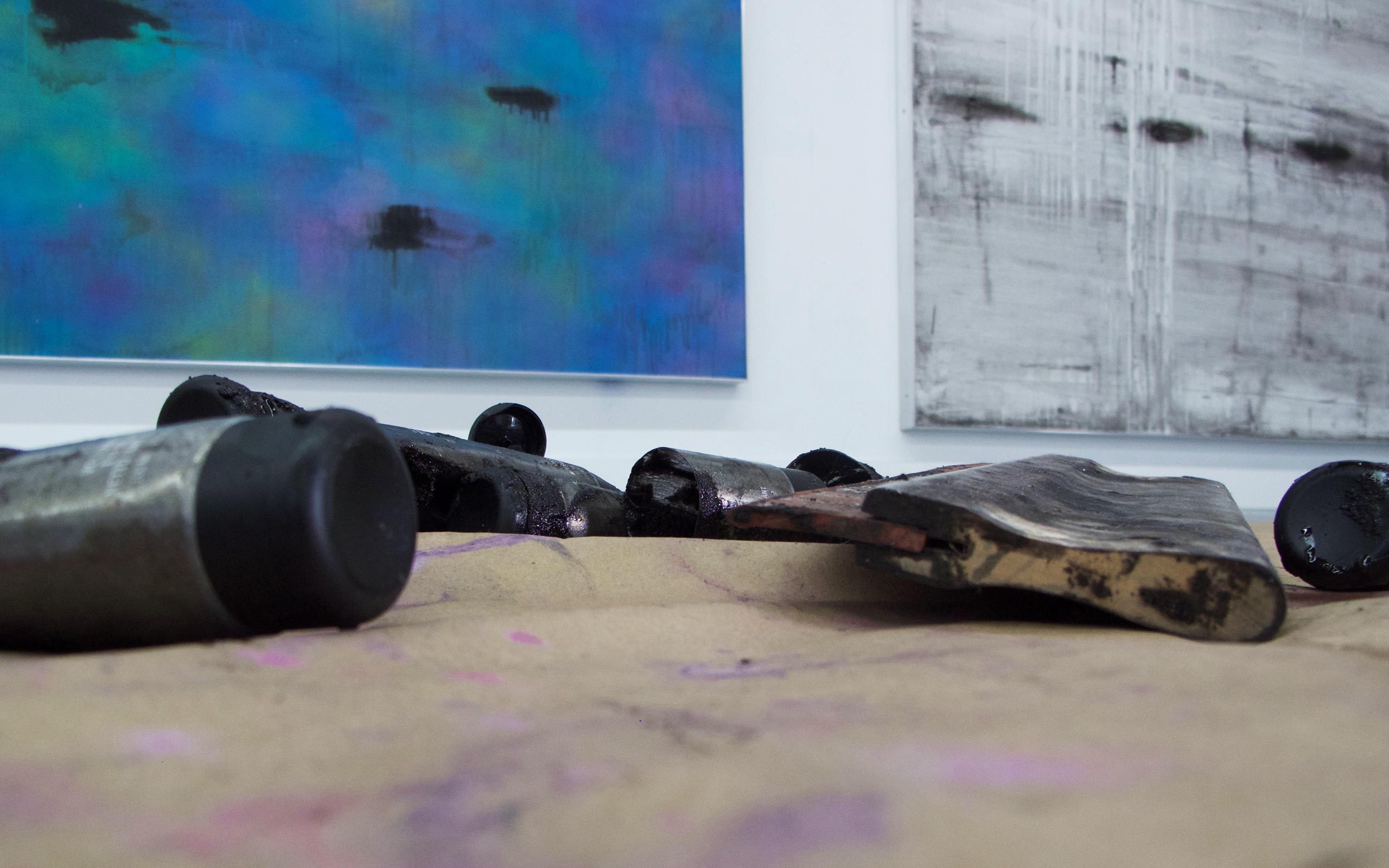 The starting point was definitely not a painting that I wanted to get rid of but a purely conceptual idea. One of my main inspirations was the thought of how much we like to put everything into categories and how much the world and life in general is experienced through oppositions. I’ve always been interested in conflict and polarization. As I get older, I realize increasingly that this might have to do with the fact that I felt I wasn't who I wanted to be when I was young. So in terms of this body of work it was the idea to first create what I call the perfect monochrome painting by applying five coats of industrial paint with a roller and then doing the complete opposite: setting it on fire with a blowtorch. What was left after putting the fire out would be the painting.