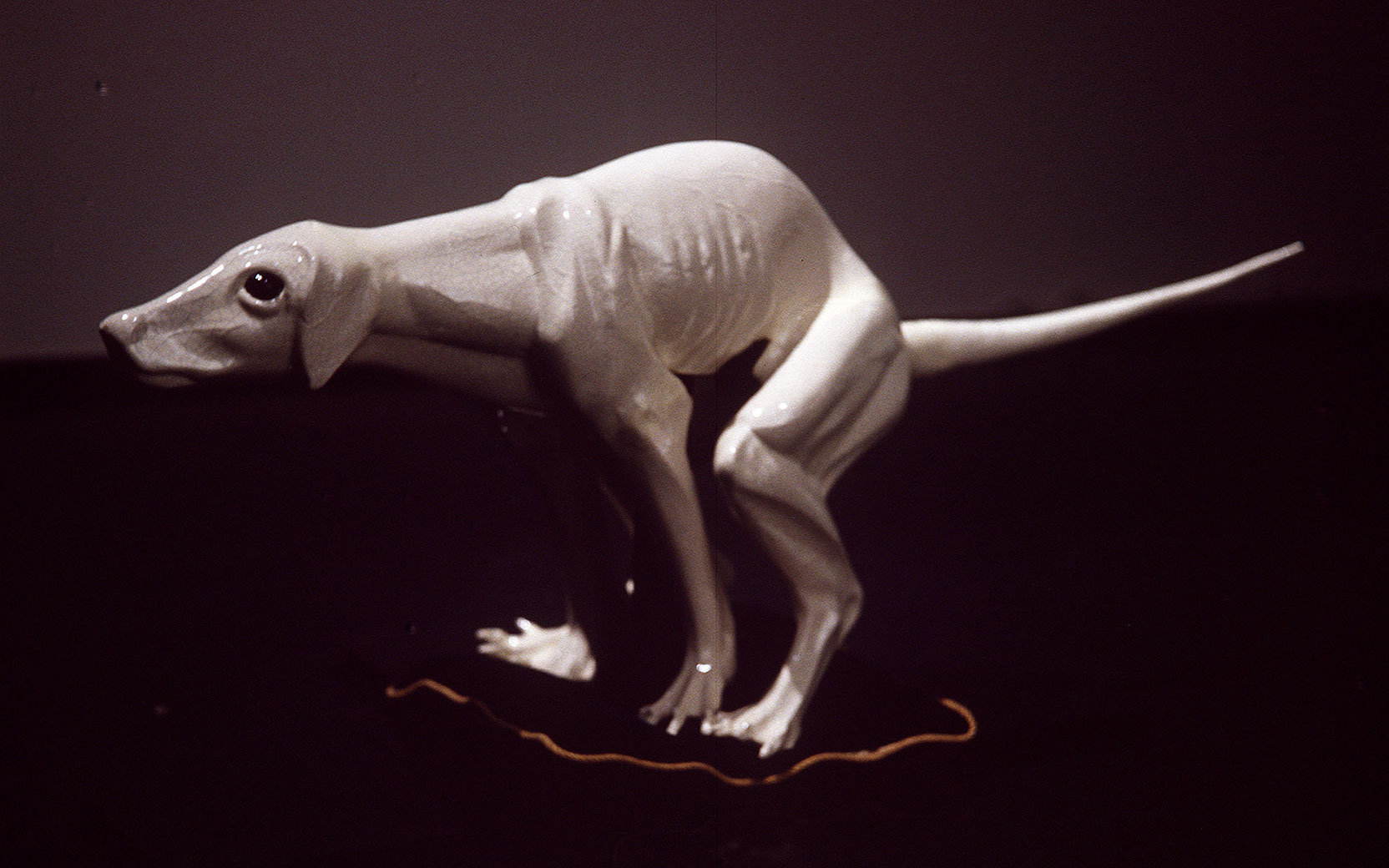 Looking at your white and shiny porcelain sculptures here in the studio one gets the impression that they have just escaped a manga comic. Can you describe that development from your early dog figurines to your work today?
