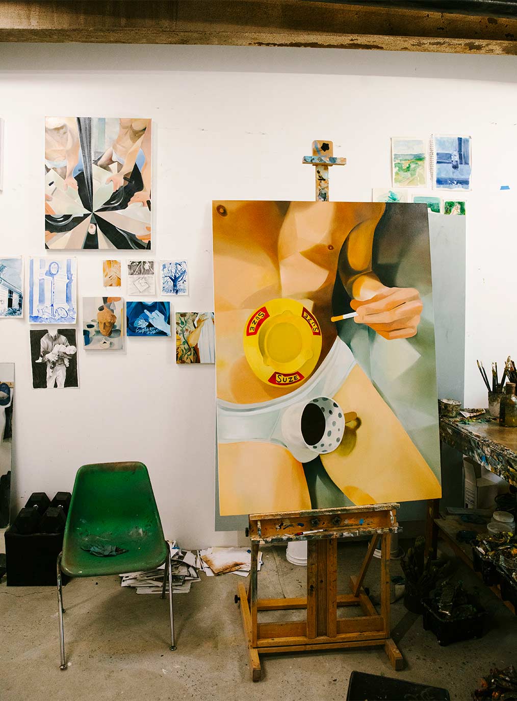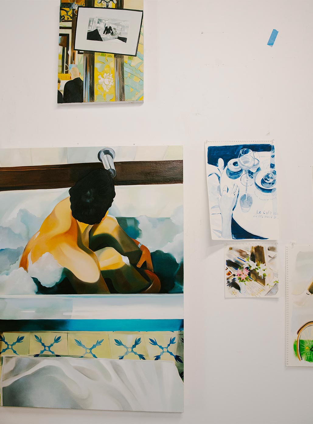 I try to change up how I source my imagery. For a long time, I was pulling images from social media, being kind of an Instagram stalker. Lately, I’ve been working mainly from my own photos—taking pictures when something strikes me and trying to be a bit more passive in how I collect reference imagery. I just take a bunch of images and trust that something will work from them. I’m trying not to be so deliberate; I don’t want to orchestrate anything. I want to just let it come. I’m really aware of how I work and of my artistic niche. On one hand, I feel so present and in the moment because I’m paying attention to every little detail, seeing potential in it all. On the other hand, you’re never fully present because you’re always on the hunt for something. It’s an interesting point of tension, working from there.