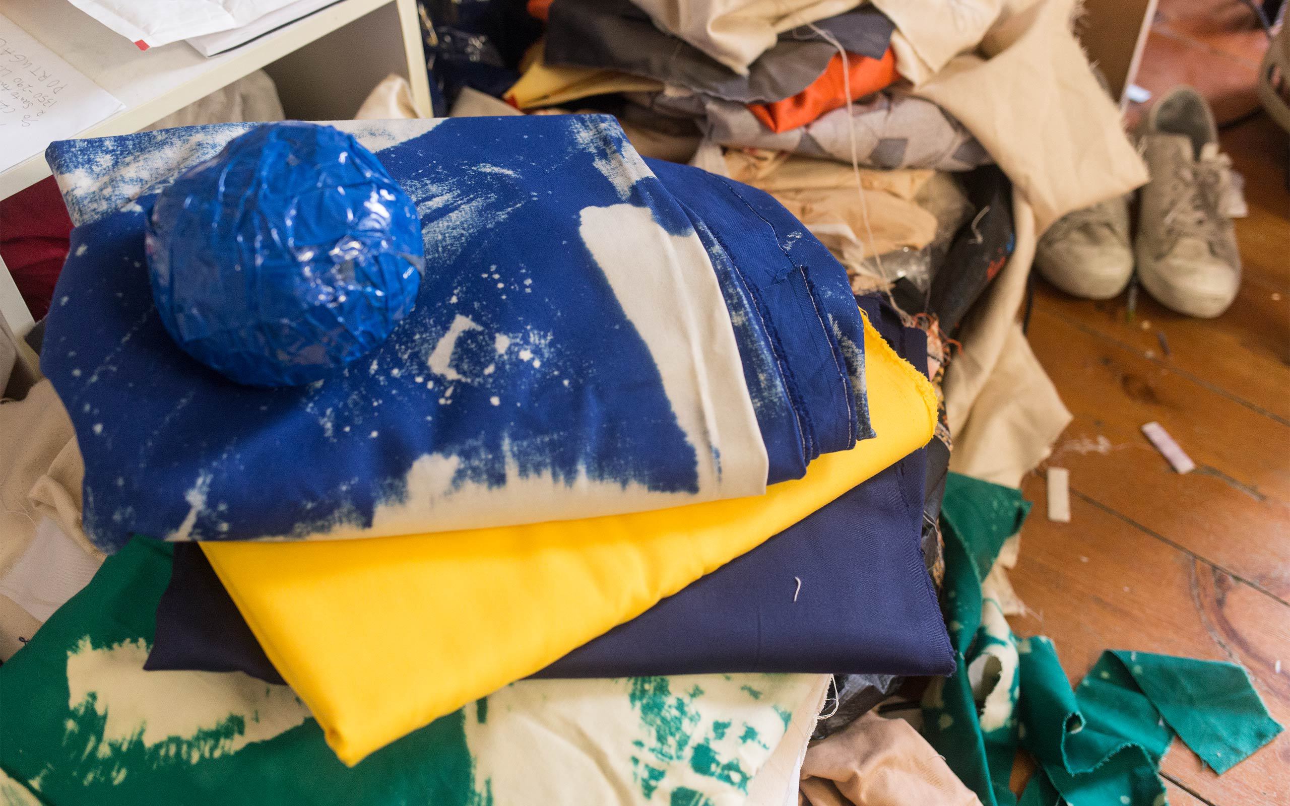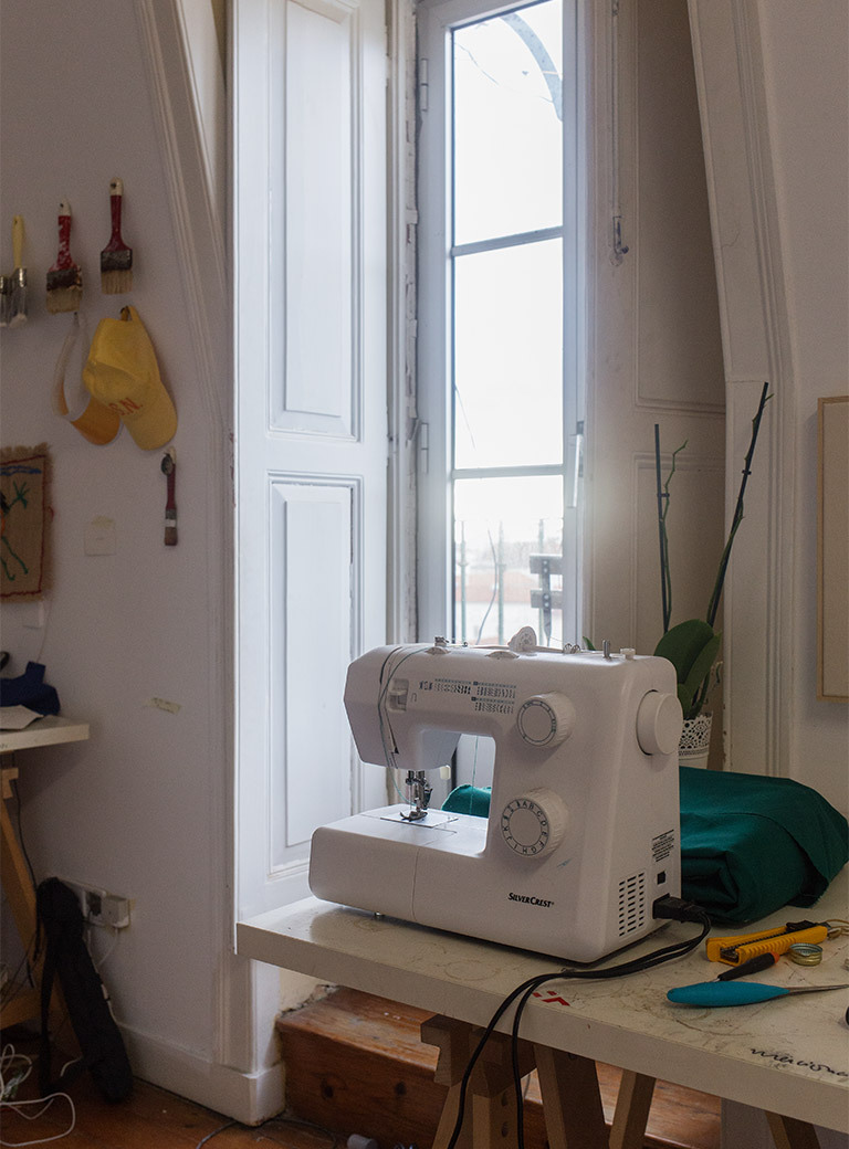 I spent ten months in Hamburg. After that I think it was a really good time for me to come back to Lisbon. Meanwhile three or four new foreign galleries had opened, which was something that was unexpected. And I got a studio and started working as much as I could to be ready for opportunities. When I arrived in Lisbon, I did a project in a library in the North of Portugal, in Viseu, not an art-scene related kind of thing, but it was about the energy I had gained in working everyday and to mix that with my roots. Something that I realized in Hamburg was that I needed to be surrounded by the cultural references that are part of my work. For example to get the kind of fabric I wanted and the materials, the specific kind of bleach, that was really difficult in Germany. It was about this familiarity regained in coming back and of course the sun and everything...