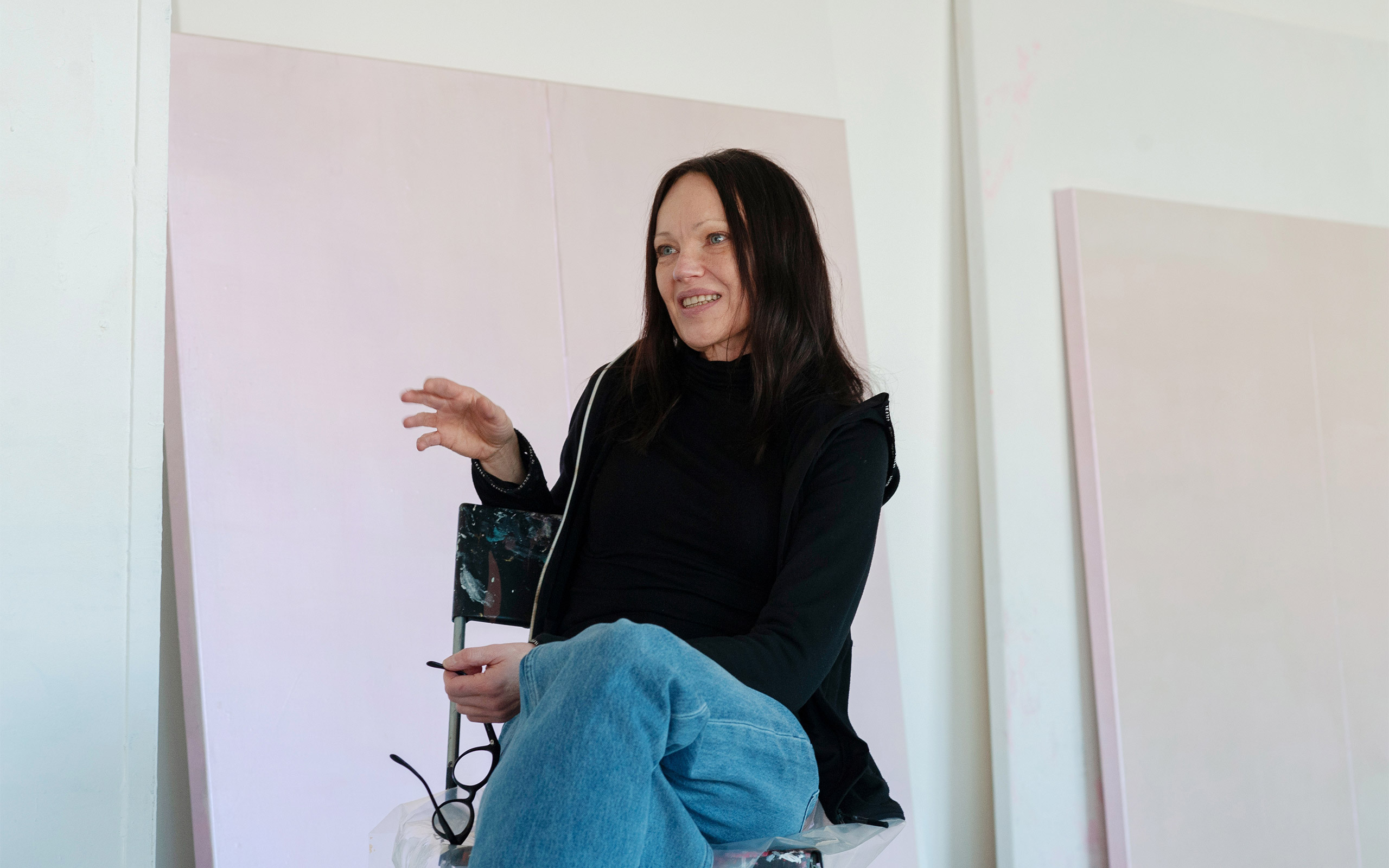 Well I don’t think my painting methods are close to Abstract Expressionism per se, but I certainly have lots of references to this movement among other modernist languages in my work. I want my work to be open to many contexts. I’m a feminist myself, but I wouldn’t necessarily call myself a woman artist. It’s such a stereotypical and clichéd way of looking at my work, as if they [her series of works made with pink neon paint] were only about pink and that it must be about being a woman. Why should it be about women? Of course, it’s partly because I am a woman, but it’s not the main reason. I also heard from people about my paintings that you can’t tell if they were made by a man or woman, and I really love that because I don’t like gender categorizations in general. I hope it will happen one day that we don’t think so much in those terms.