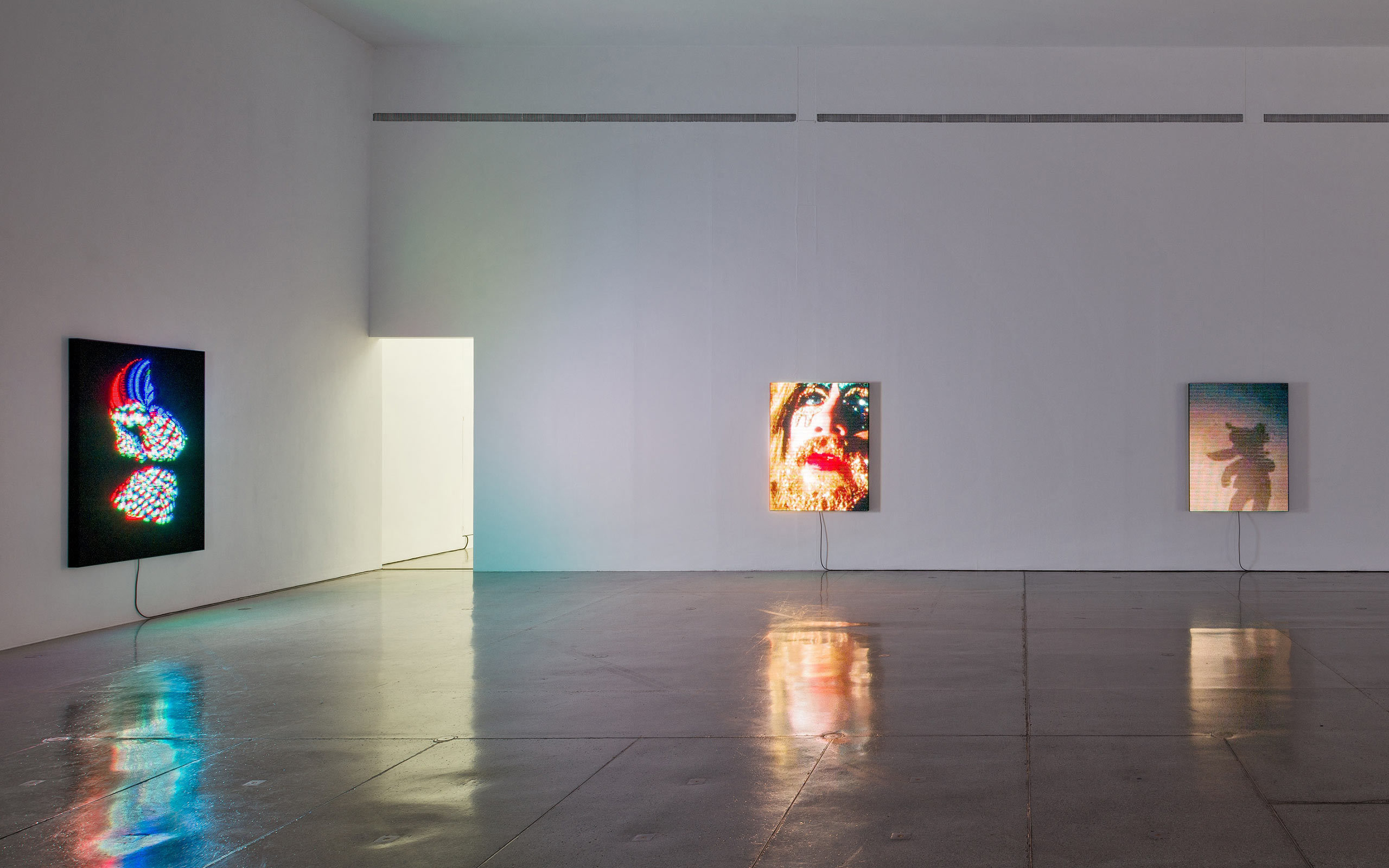 Mark Leckey is hailed as the artist of the YouTube generation. His first major video work, Fiorucci Made Me Hardcore (1999), was informed by the artist’s working class upbringing. His more recent work combines ancient and digital items to examine the way objects “speak” to each other. GreenScreenRefrigeratorAction (2010) features a Samsung smart refrigerator “acting” against the background of a green screen, while The Universal Addressability of Dumb Things explores the Internet of Things, the science fiction–like scenario of digitally embedded sensors that allow humans and machines to remotely interact. In 2008, Leckey won the Turner Prize for his exhibition Industrial Lights and Image.