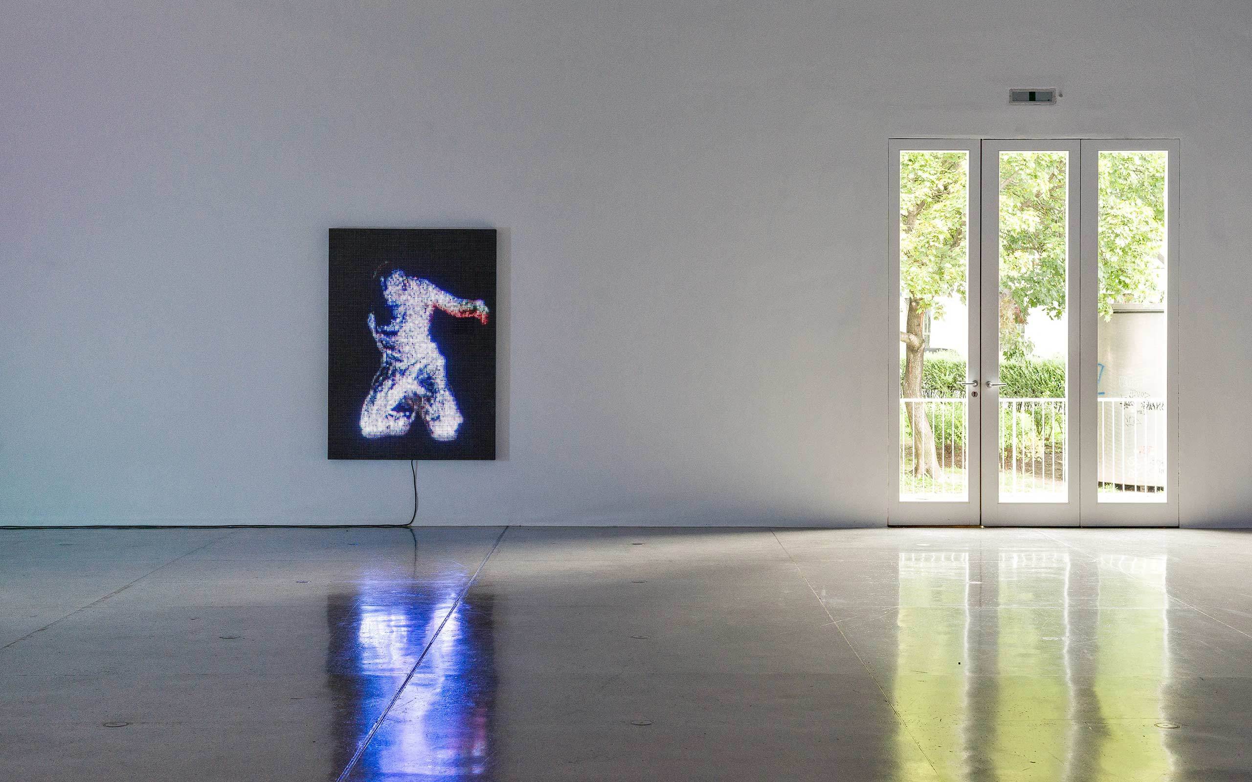 Well, it is a bit cheesy, if you know that expression. WeTransfer is actually a file transfer system. It evokes for me the idea of how things are constantly being transformed or transported from one state to another. Everything on these screens in the ground floor exhibition hall is an image being generated on LED panels. They don't look very fixed or very stable. They slightly flicker or hover on the support. So these images feel a little bit immaterial, ghostly, and transferable to me. It's not like a painting, where everything has a permanence and things are like set down. There is too much technology.